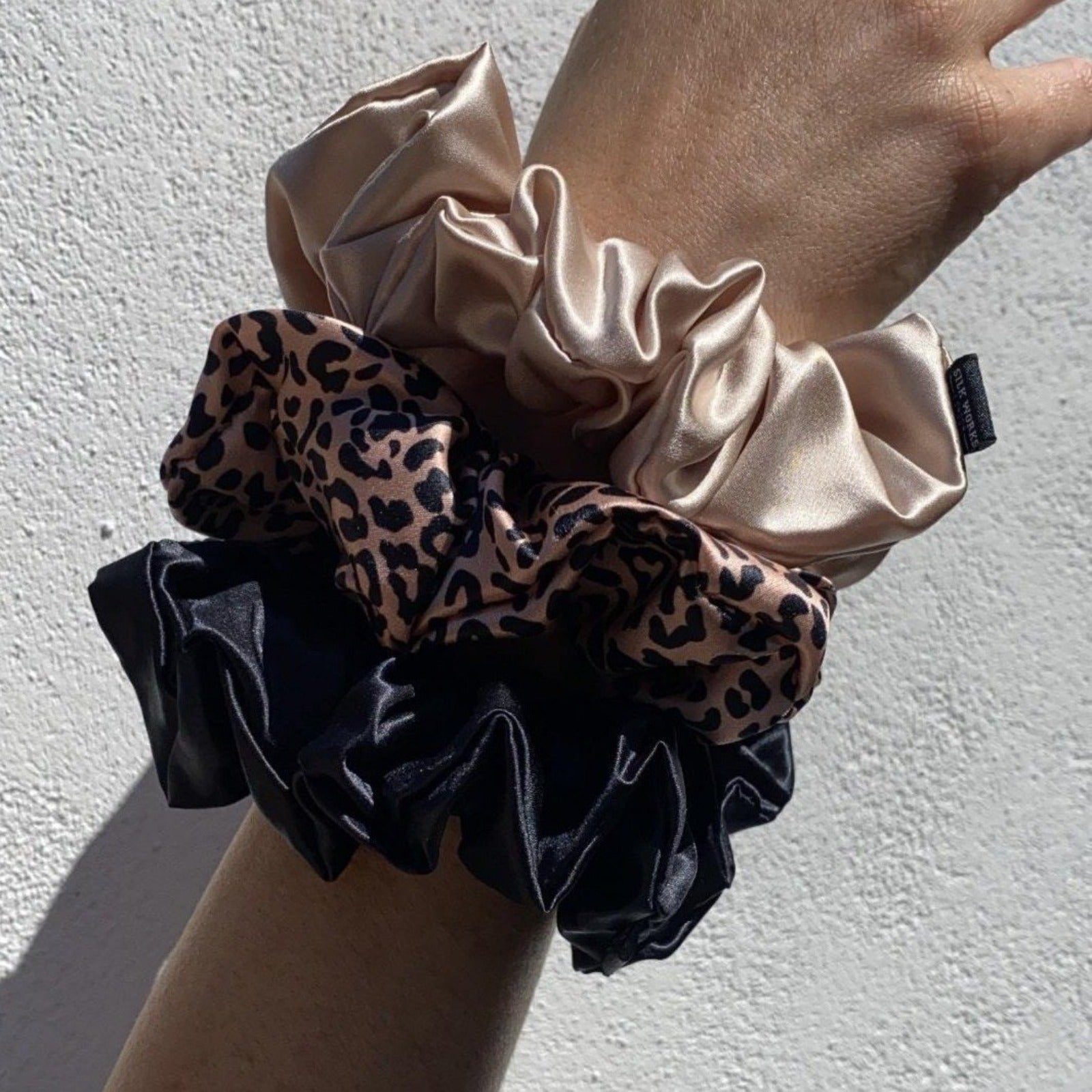 3 Large Silk Scrunchies - Rose Gold Leopard Mixed Set