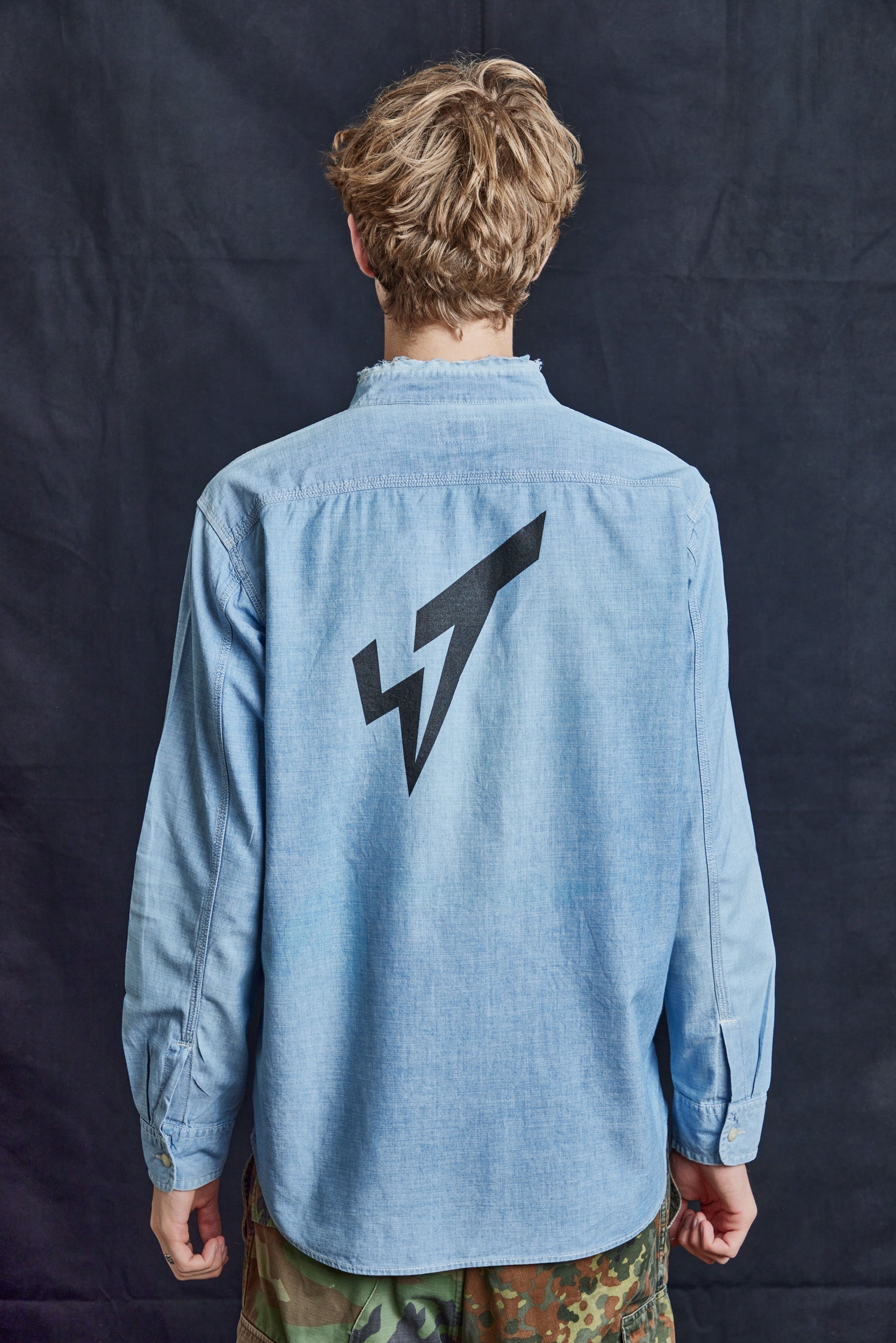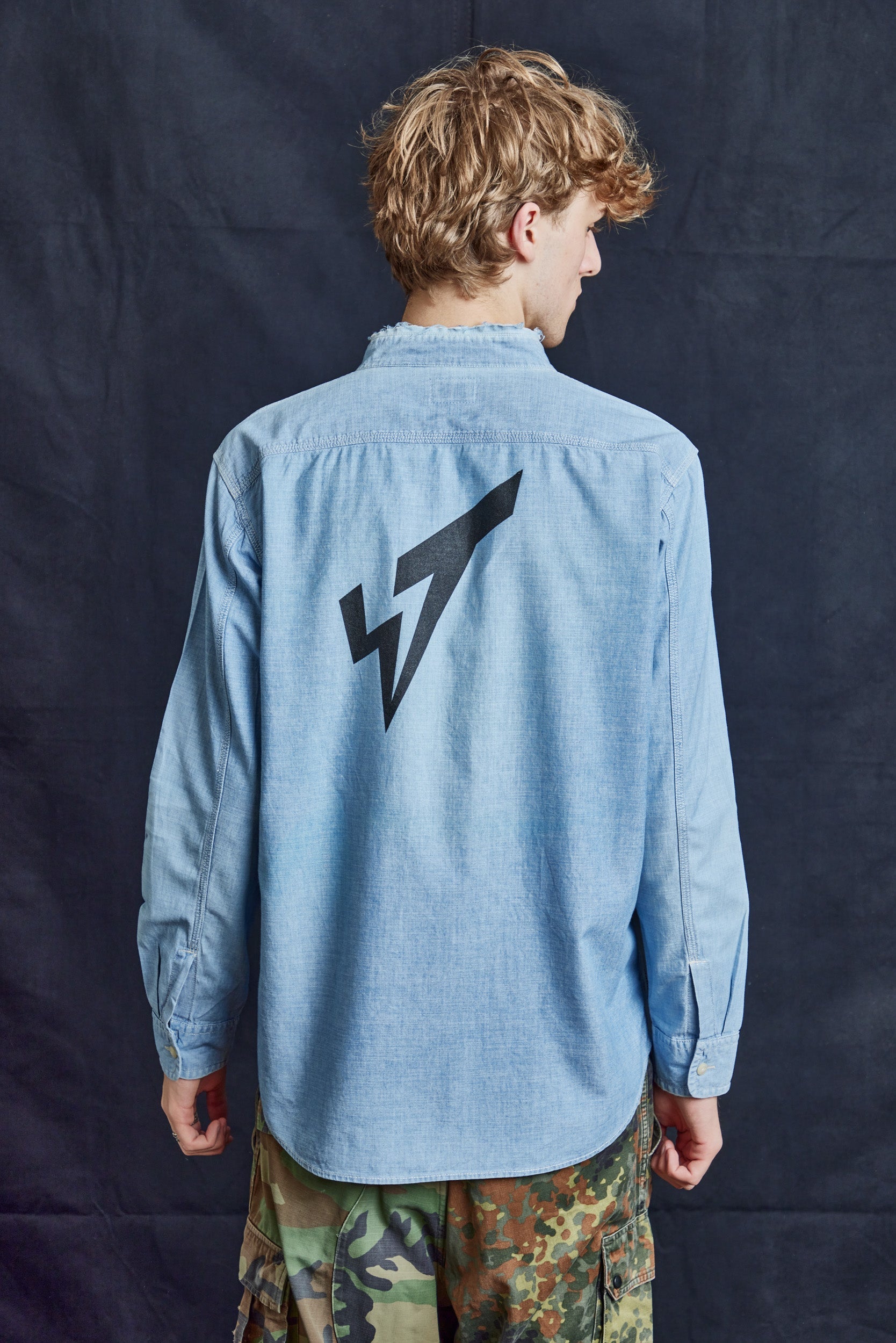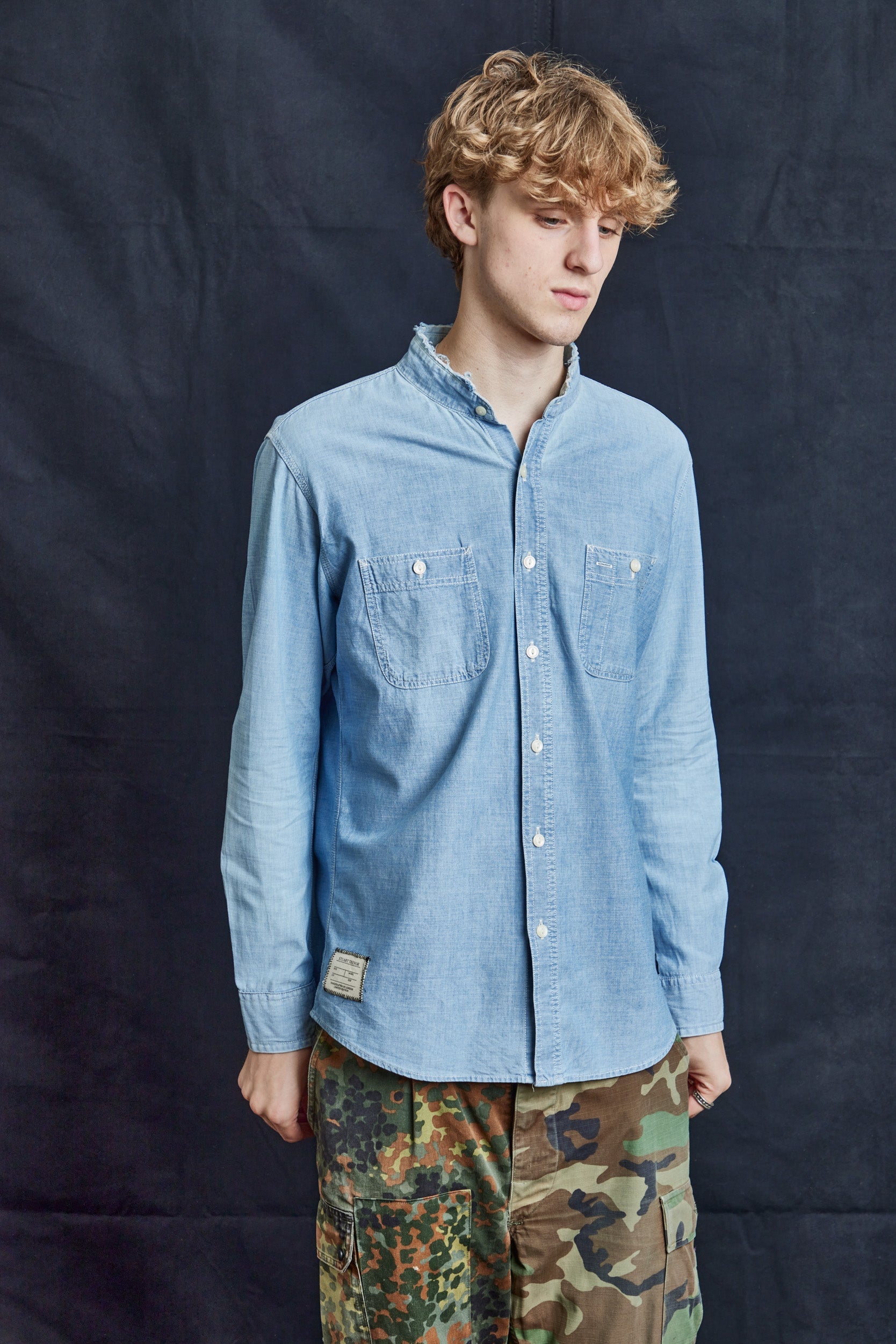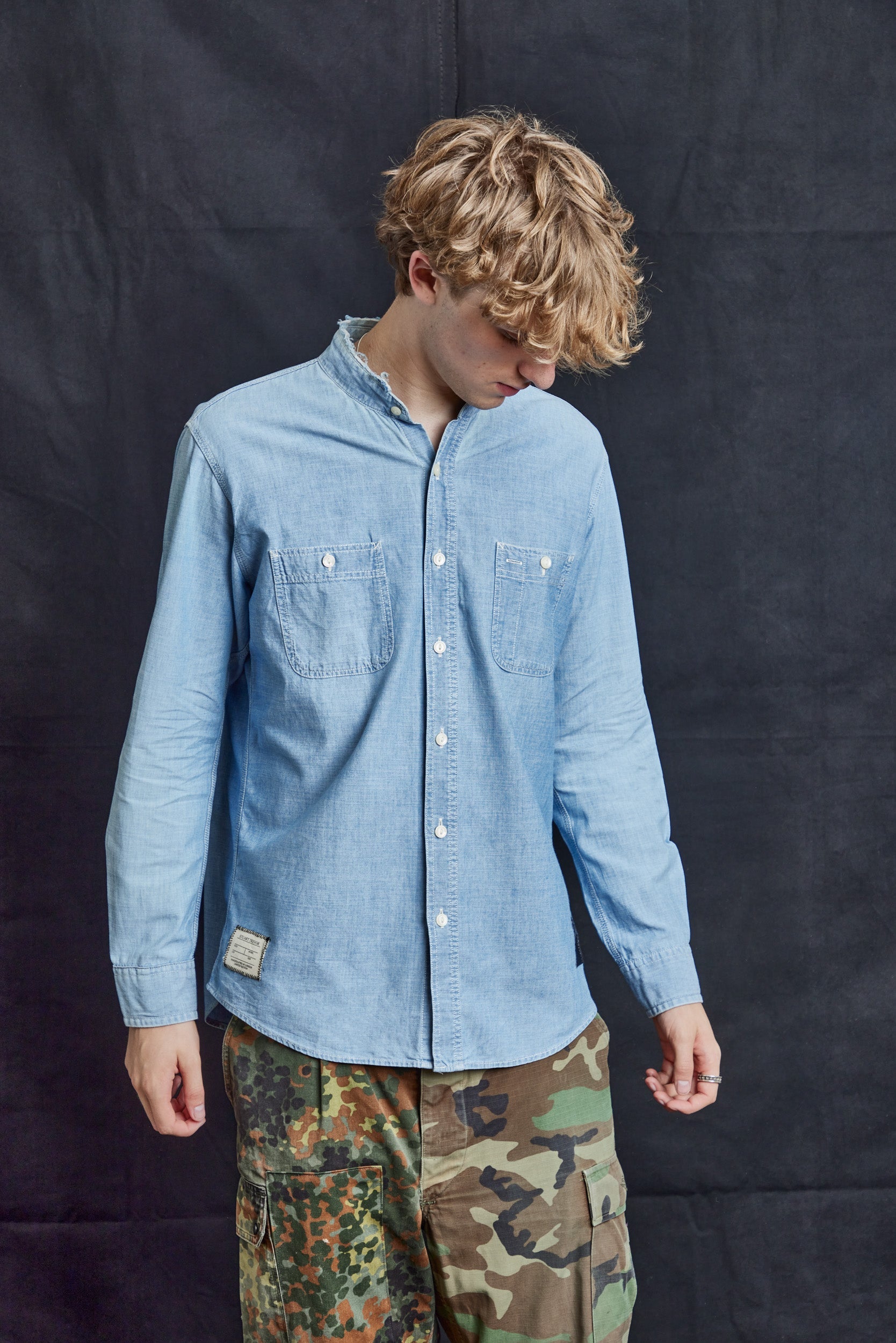 Custom Vintage Cut-collar Vintage Denim Shirt, with ST logo on the back and ST Tailor patch. Button adjusted cuffs. Classic fit.