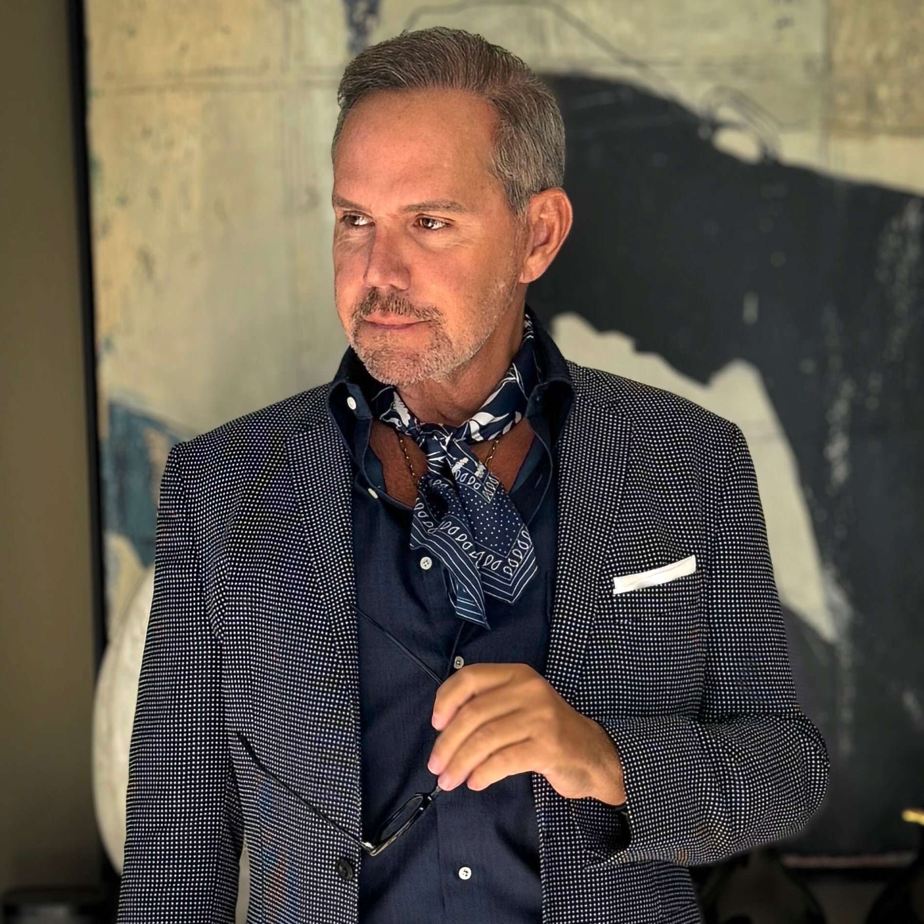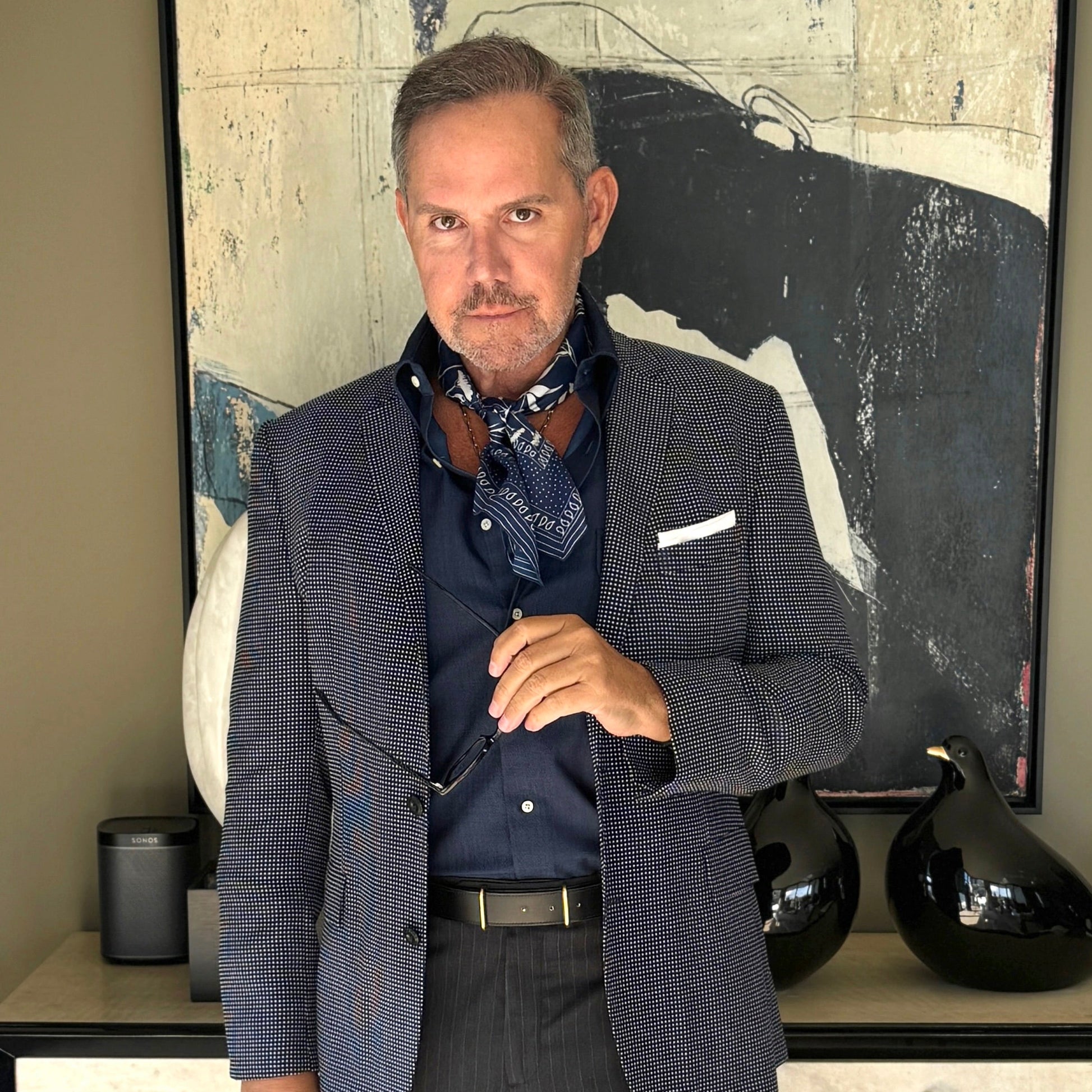 Blue Kyoto Bloom Silk Scarf - 65cm Men's Neckerchief