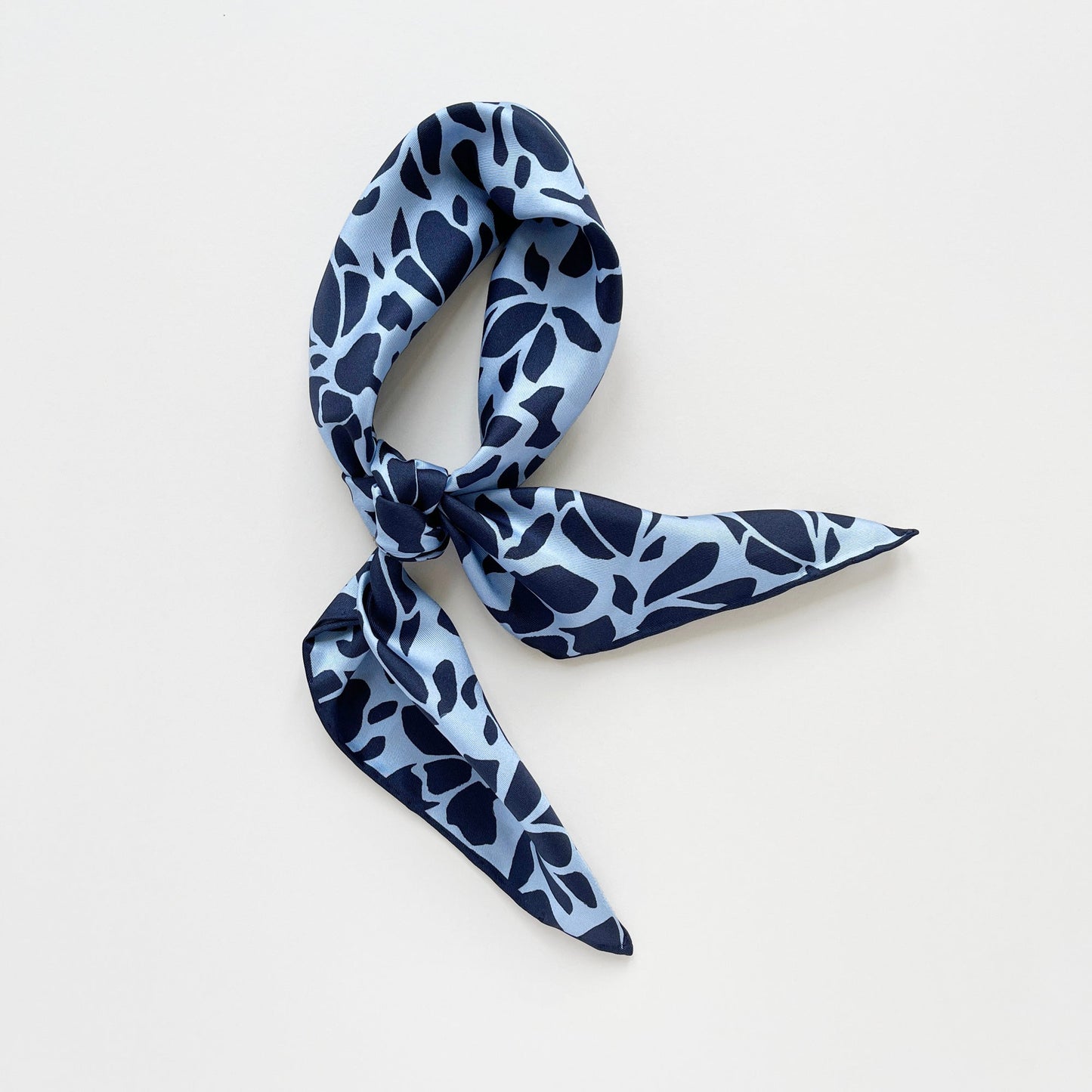 Blue Melody Silk Scarf - 65cm Double-Sided Print with Hand-Rolled Edges