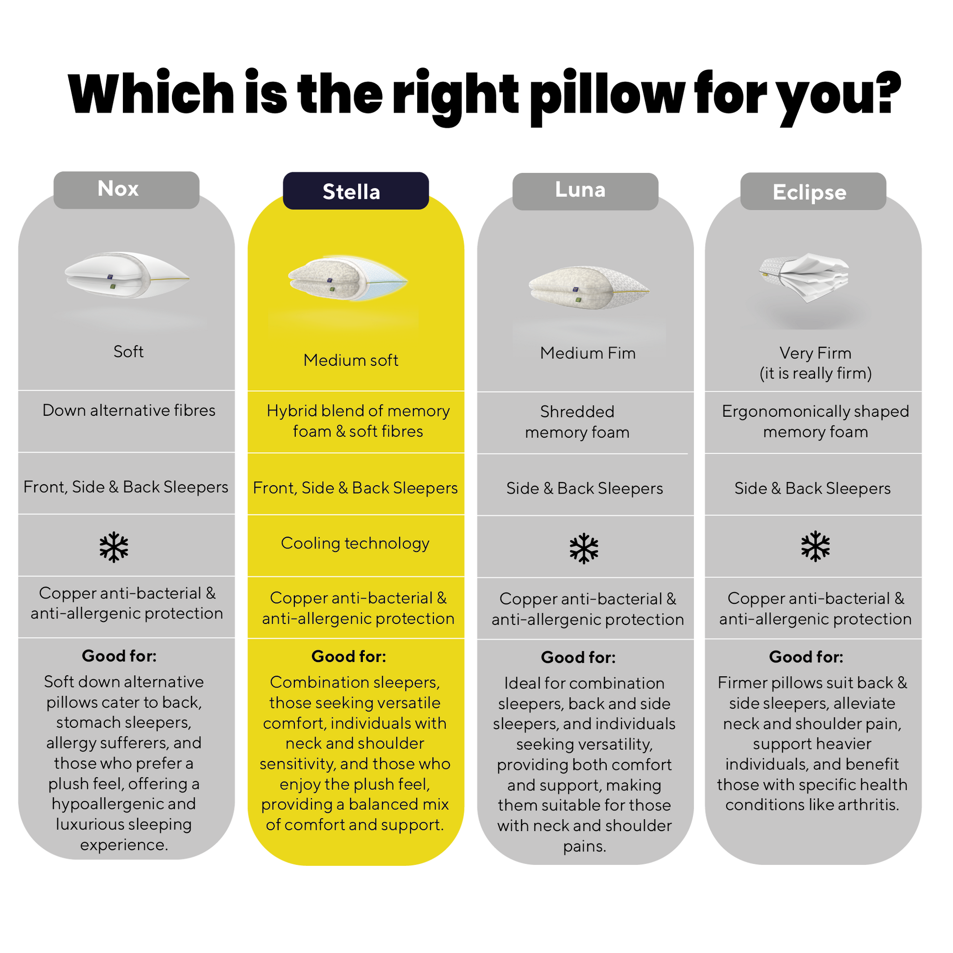 Experience the signature Brightr comfort you love — now reimagined with sustainability in mind. This refurbished Stella pillow has been carefully cleaned, renewed, and re-certified by our in-house experts to deliver high-quality sleep at a lower environmental cost.