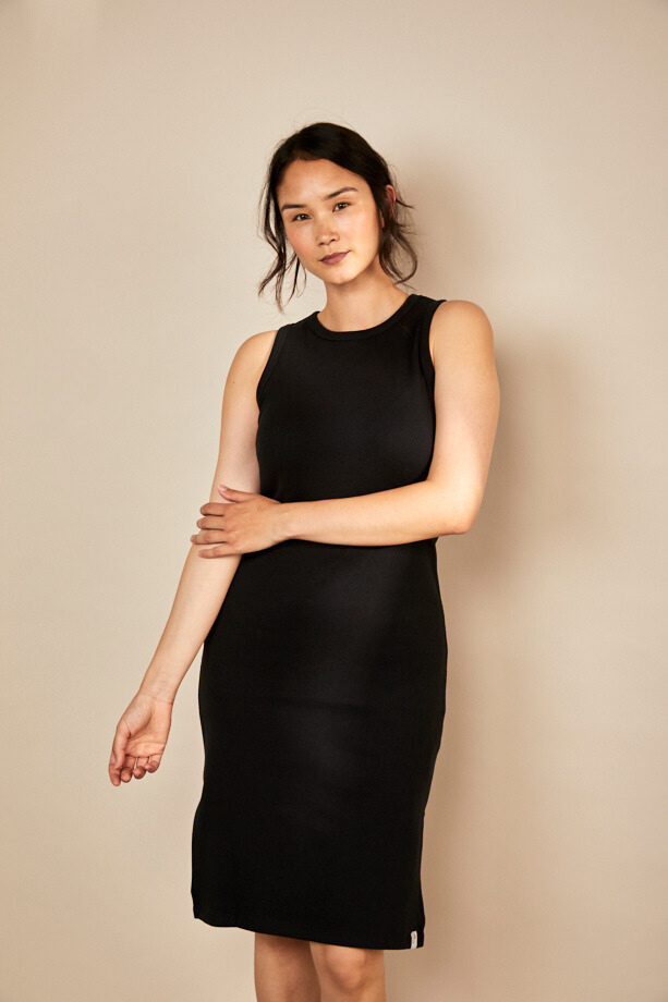 A refined take on classic black, this dress features a rich charcoal hue—perfect for adding depth and versatility to your wardrobe. An elegant piece that complements any look, day or night, with a subtle touch of character.