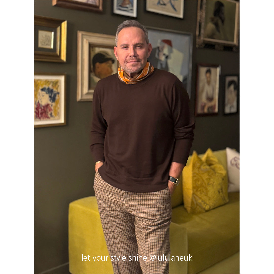 Looking for a stylish, non-bulky scarf to keep you warm this winter? Our compact, diamond-shaped scarf, crafted from a luxurious blend of cashmere, wool, and silk, is the perfect choice! Available in two classic color palettes that effortlessly complement any outfit: one in black with a green edge, and the other in rustic brown with an orange edge, each enhanced by a timeless English-style plaid pattern.