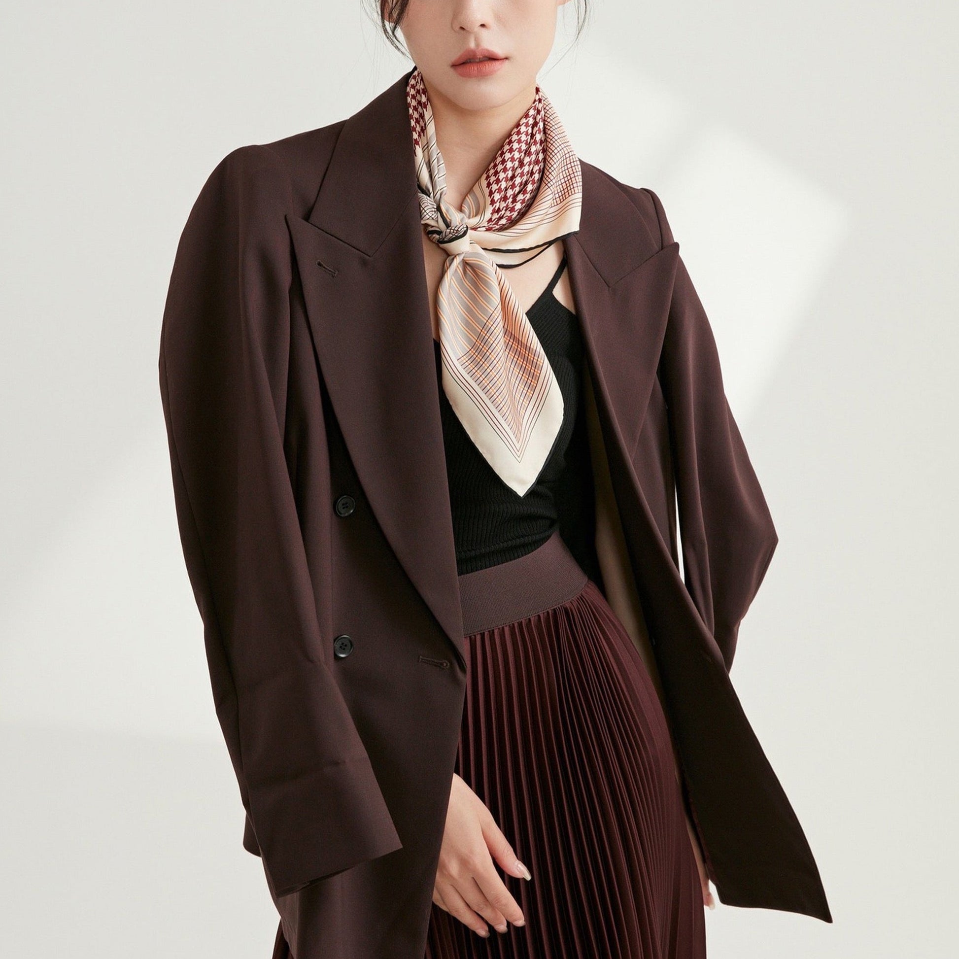 Classic Houndstooth Silk Square Scarf - 65cm Hand-rolled Bandana Scarf