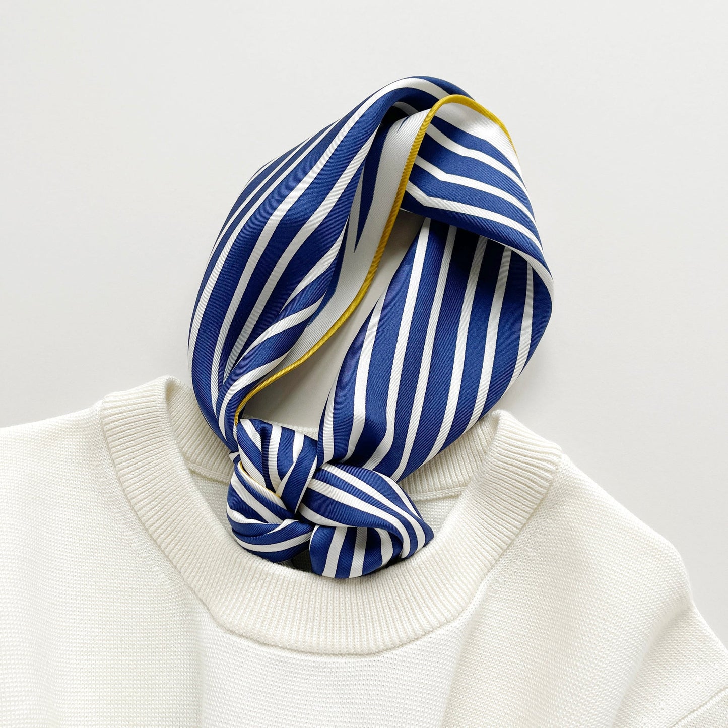 Classic Stripes Triangle Silk Scarf - Hand-rolled Bandana Scarf for Women