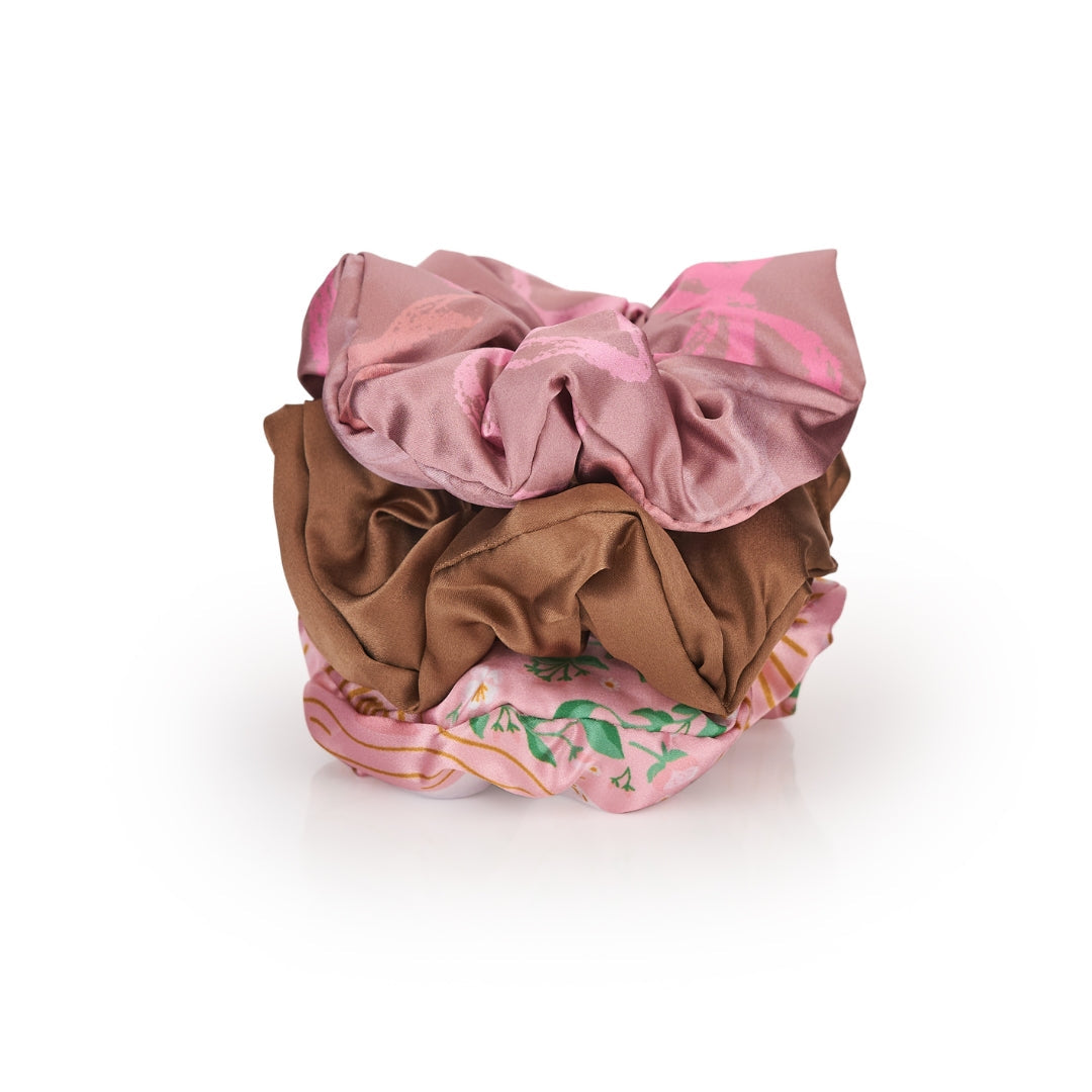 Cloud Satin Hair Scrunchie Set (set of 3) - Mocha Swans