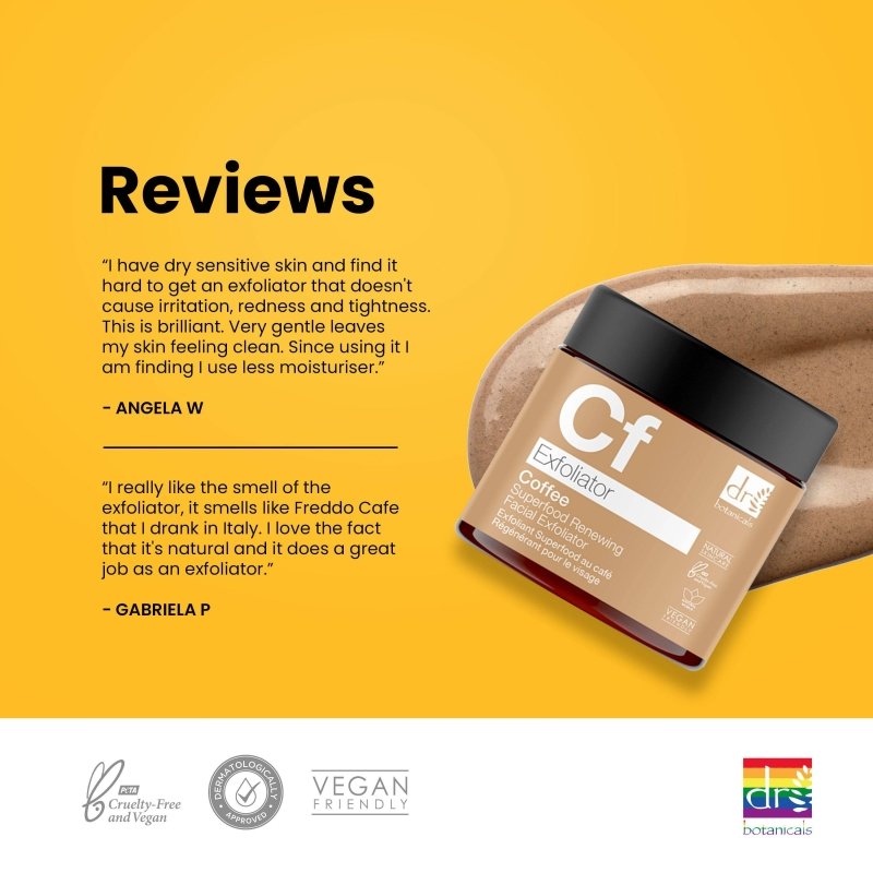 Our Coffee Superfood Renewing Facial Exfoliator gently exfoliates, enriches and refreshes your skin.