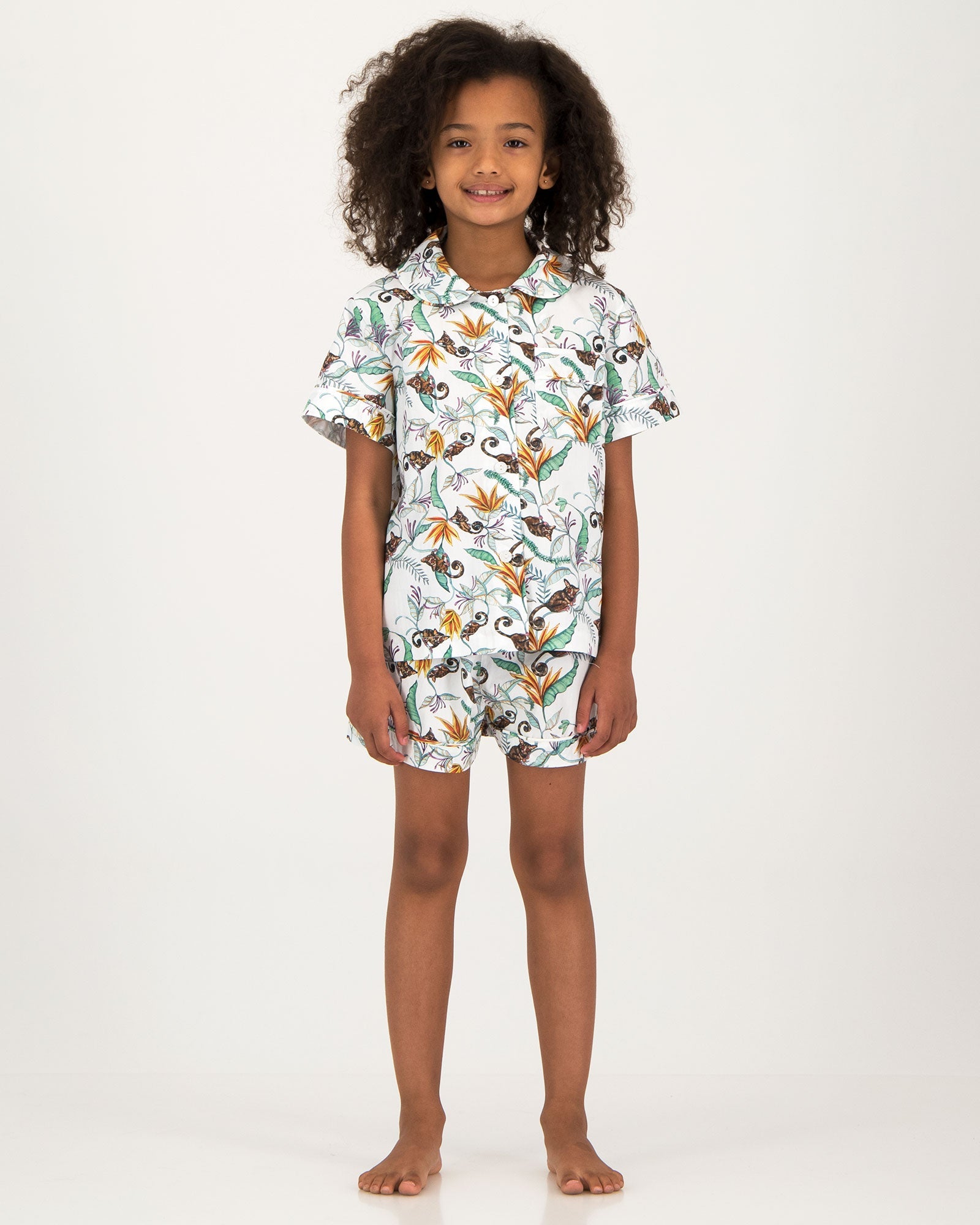 These girls short pyjamas will have her drifting off in no time. Handmade from soft organic cotton, this pyjama set features our cute and funky Night Monkeys pattern.