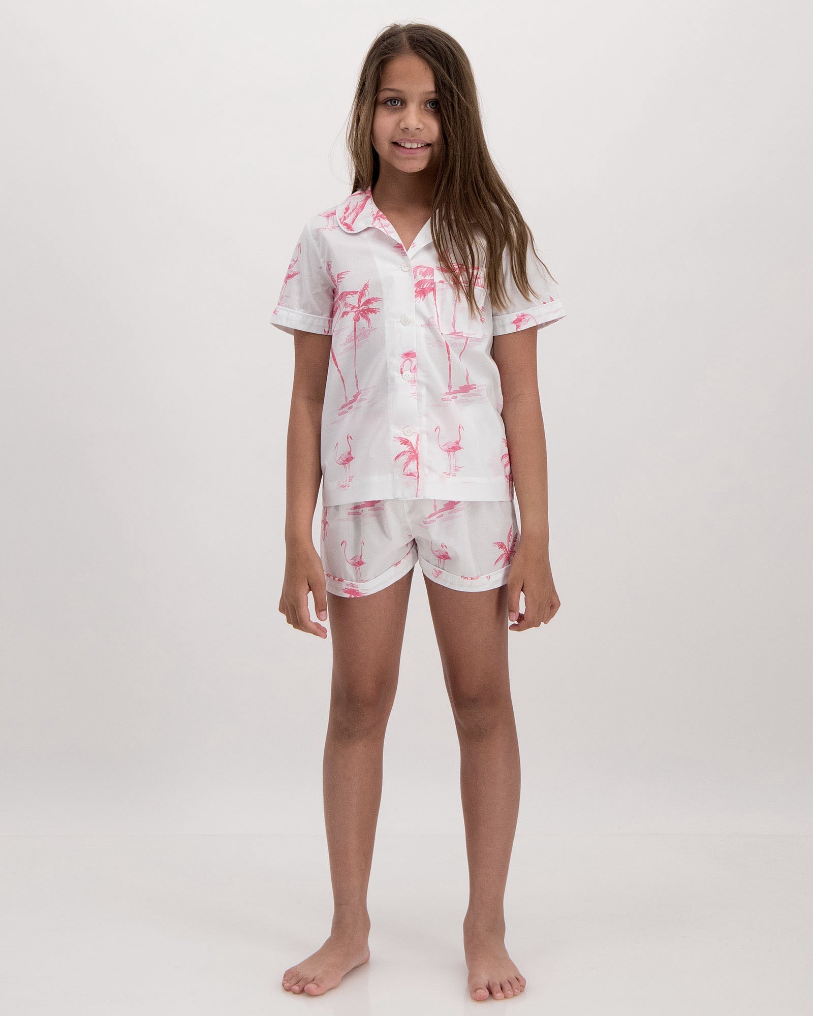 Girls Short Pyjamas - Pink Palms
