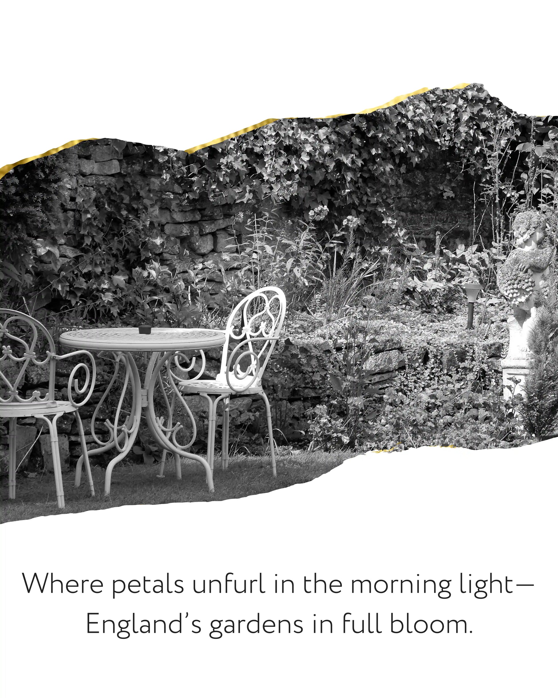 Let your mind stroll through abundant gardens, breath-taking natural tapestries of colours, shapes and forms. Lush foliage, dappled shade, delicate flowers. Beauty all around you.