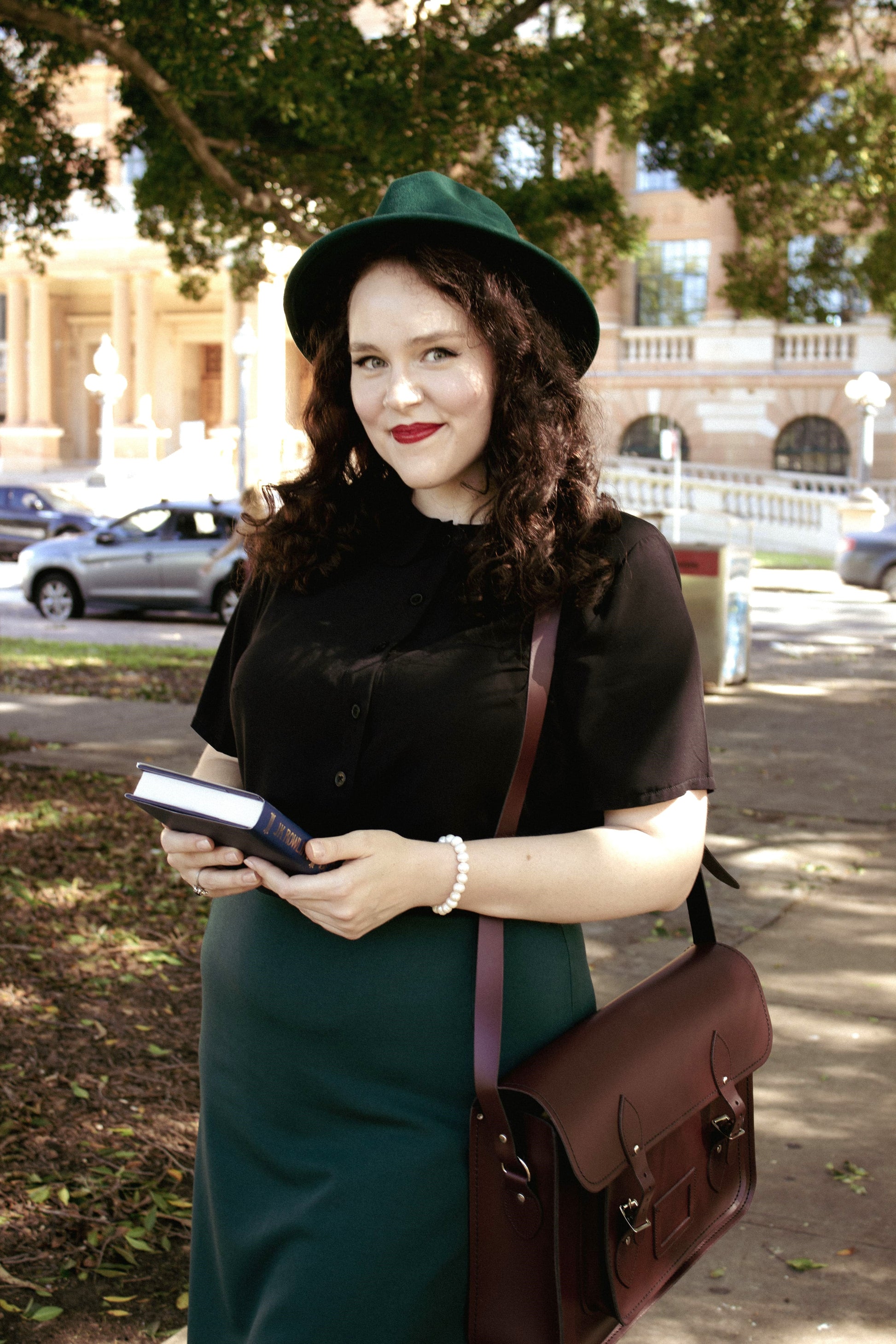 Model shown with a 16'' Marsala Satchel. All of our satchels are unisex and suitable for everyone.
