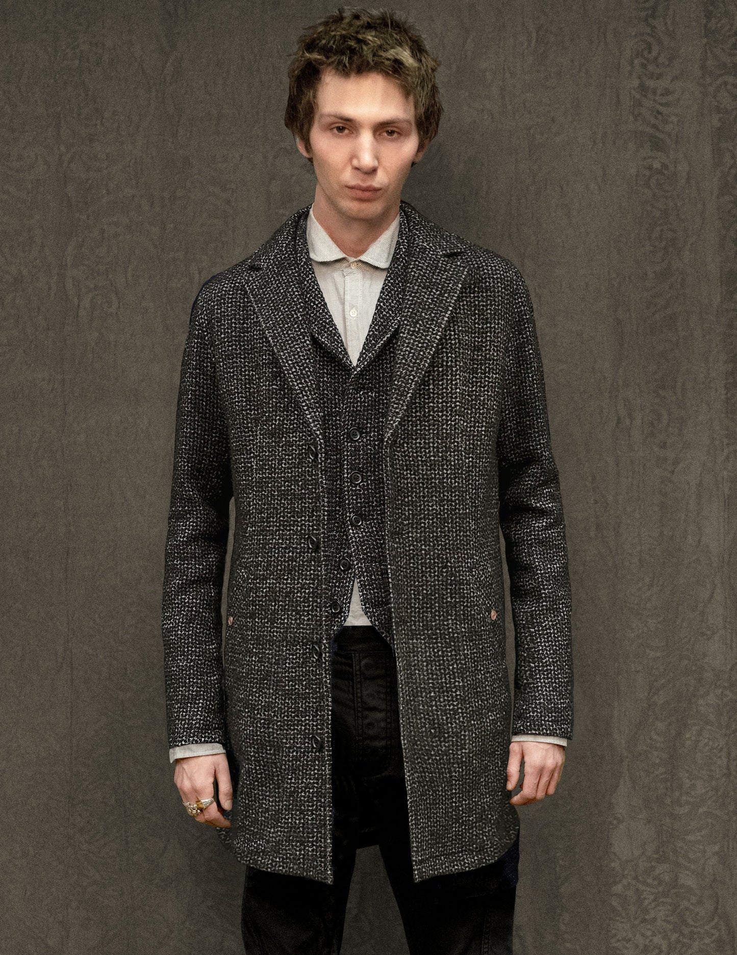Introducing the Immortal Limited Edition Silverstone style frock coat in grey and white wool.