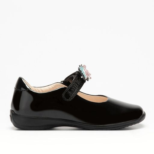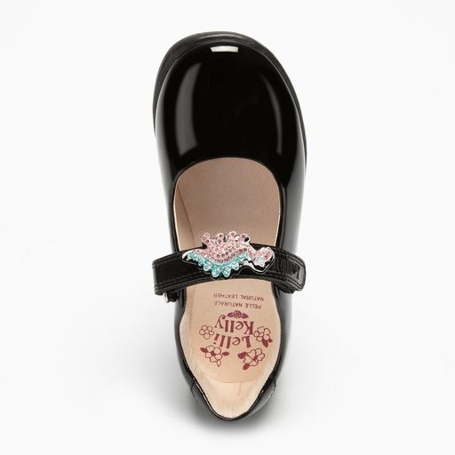 Lelli Kelly Dino Black Patent Leather Multicoloured Dinosaur School Shoes Girls