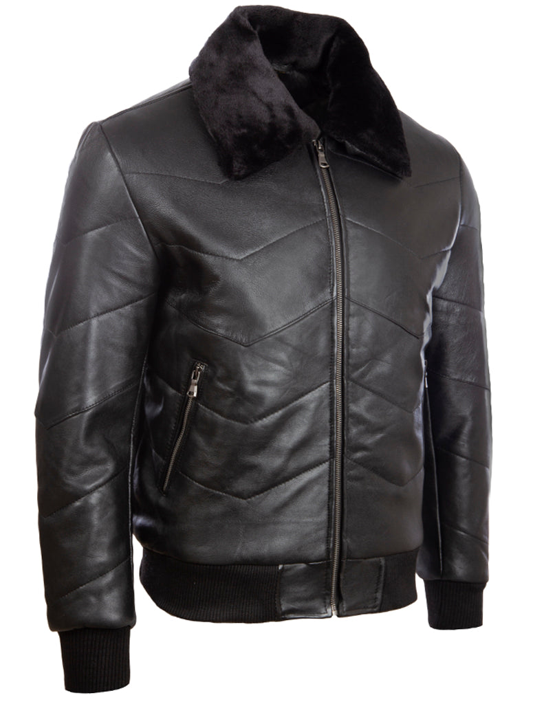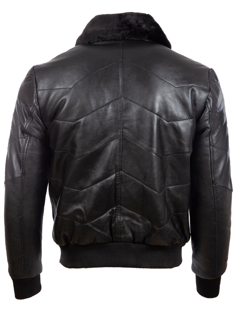 MC9P Men's Quilt Puffer Fur Aviator Bomber Jacket - Black