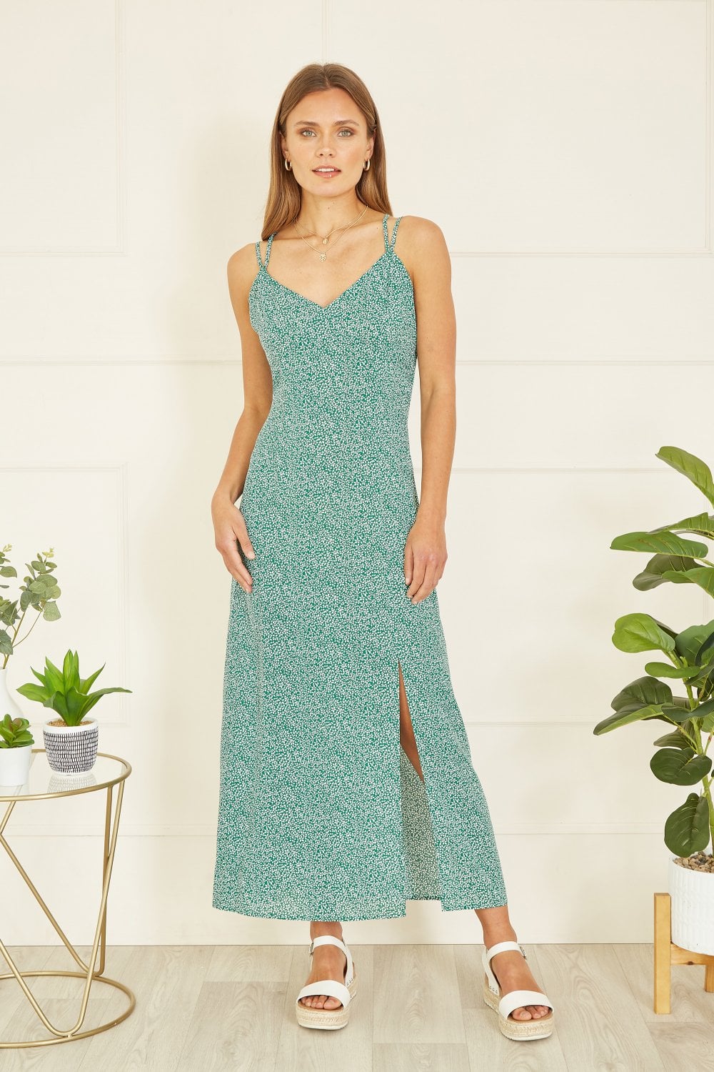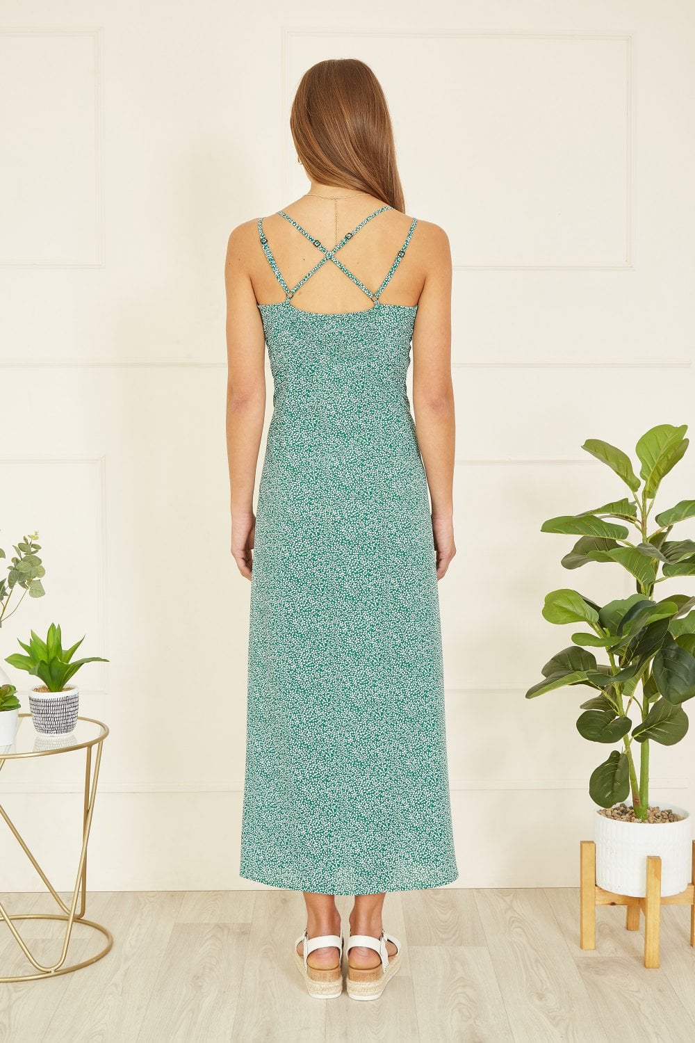 A Midi dress is a daytime essential to have in your closet. The double crossover back of this strappy one from Mela does the job perfectly for those days when you want to look summery and put together with minimal effort. The all over ditsy print is easy to style, with a side split in the hemline to give you a comfortable and cool fit. Wear with trainers and an oversized denim jacket this season.