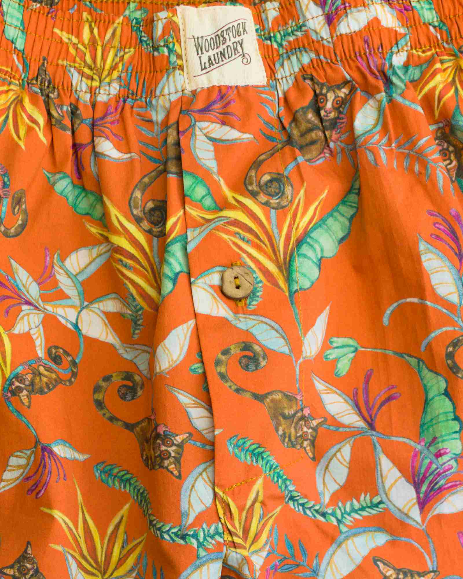 Fancy something bold and colourful? Look no further than these classic mens boxers, featuring an original, night monkeys design on an orange background. Made from 100% soft organic cotton, you'll look stylish and feel great.