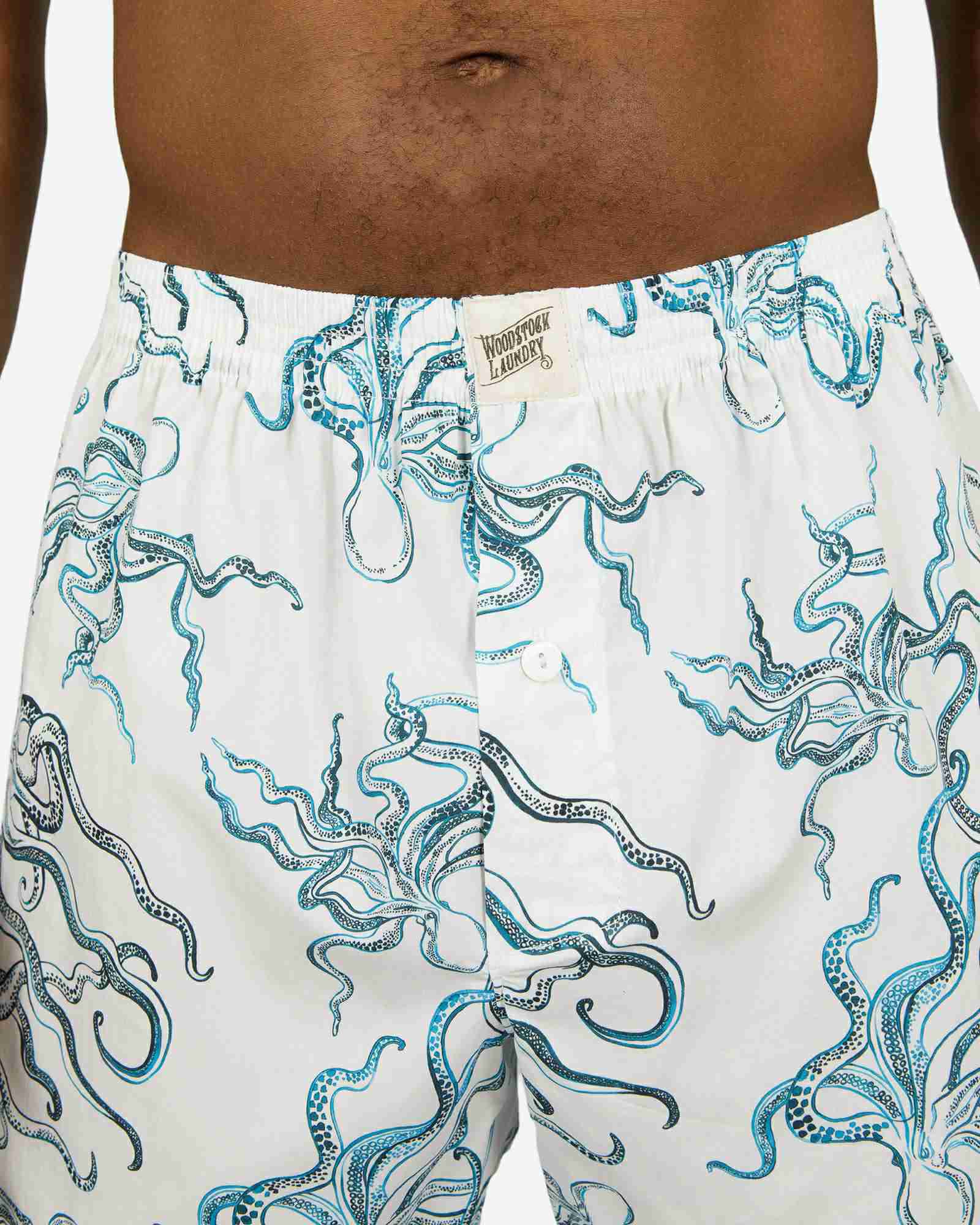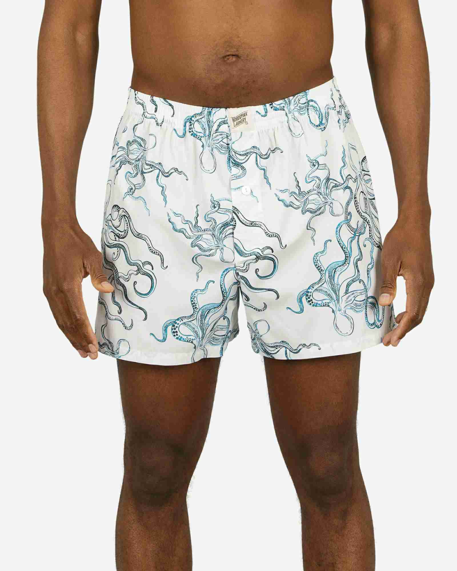 Fancy something bold and colourful? Look no further than these classic mens boxers, featuring an original, mini octopus design in indigo. Made from 100% soft organic cotton, you'll look stylish and feel great.