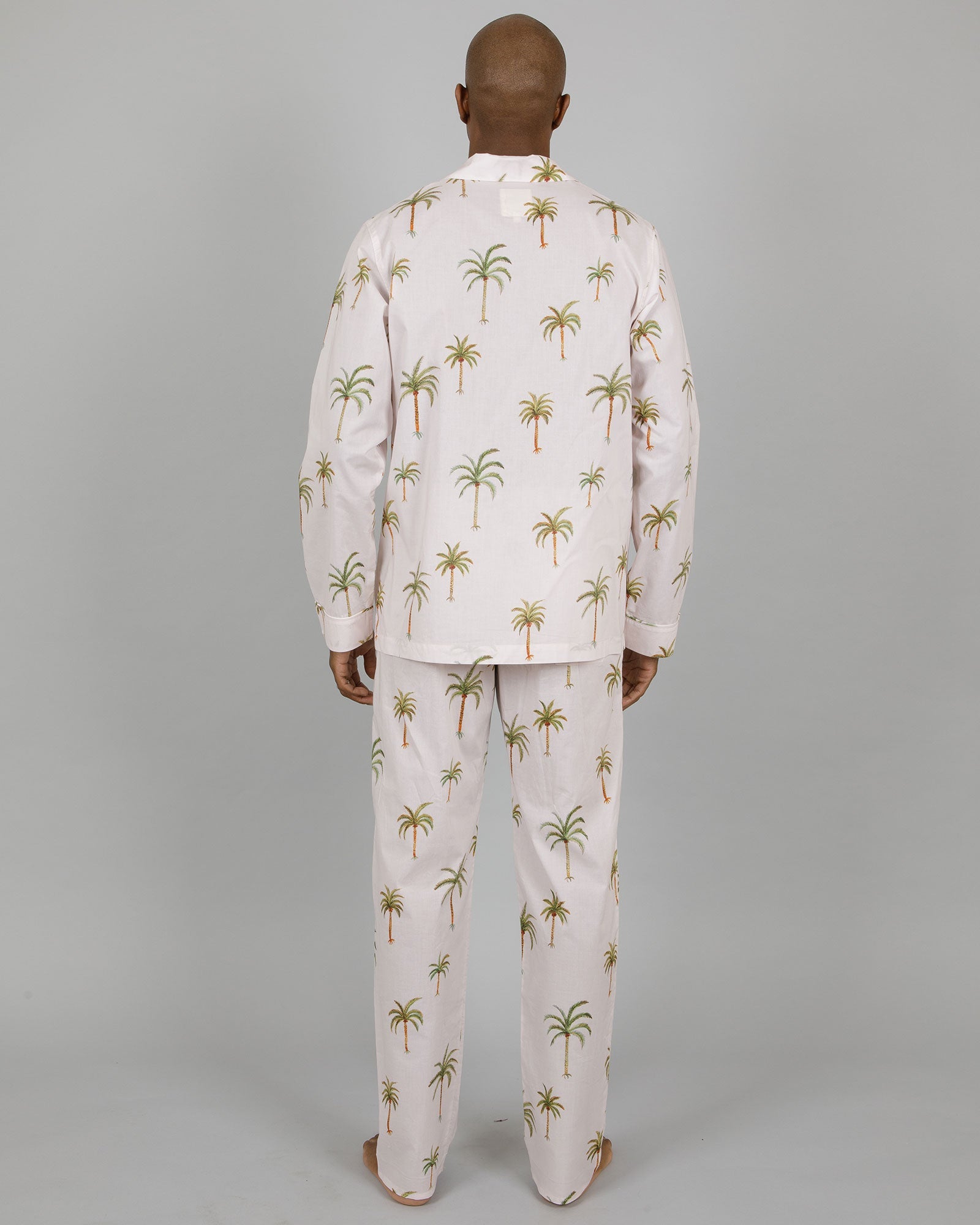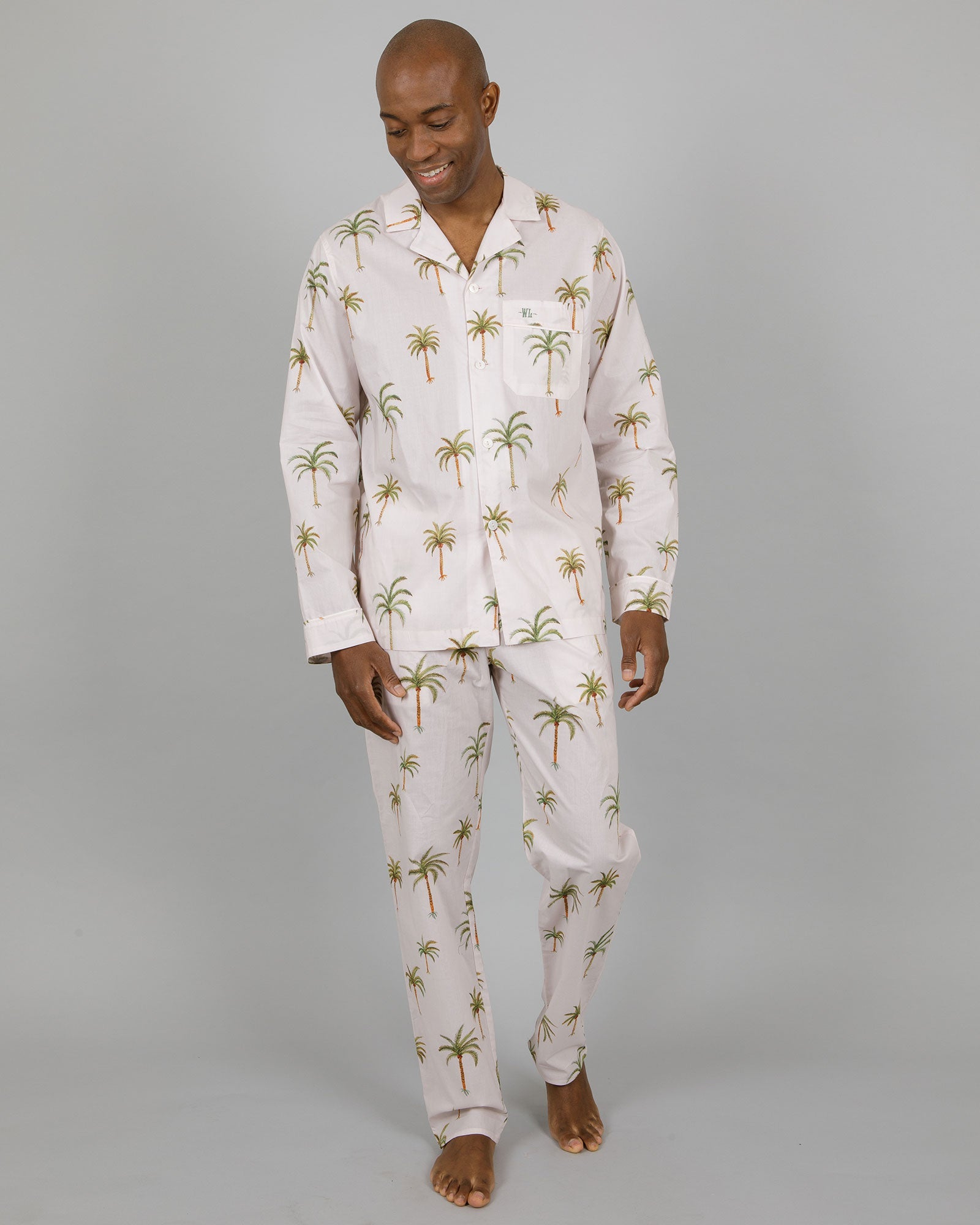 Stay comfortable while lounging in style with these organic cotton Men's Long Pyjamas. Featuring classic palm trees, these pyjamas will keep you cool and relaxed. Soft and breathable organic cotton designed for year-round comfort.