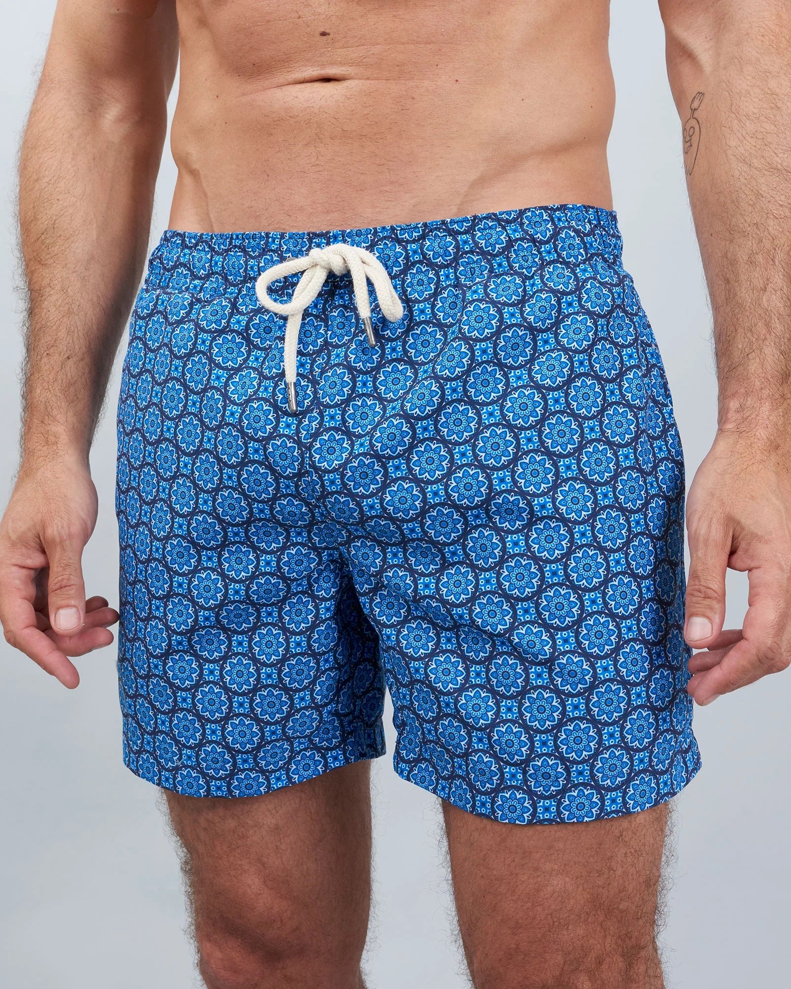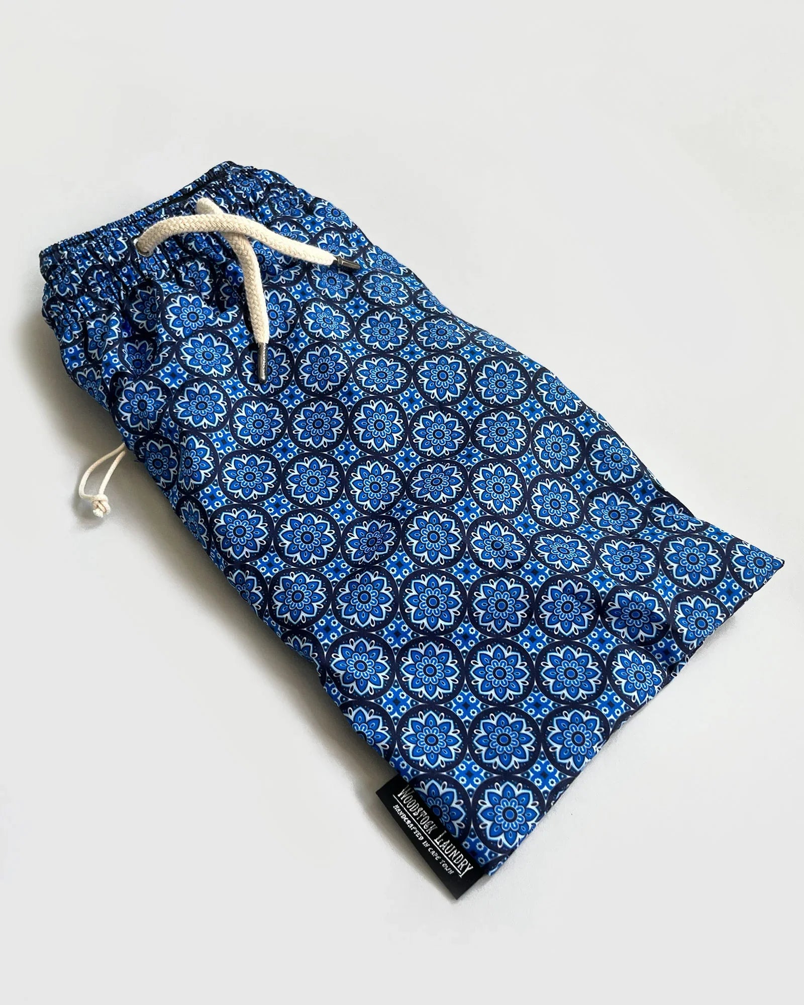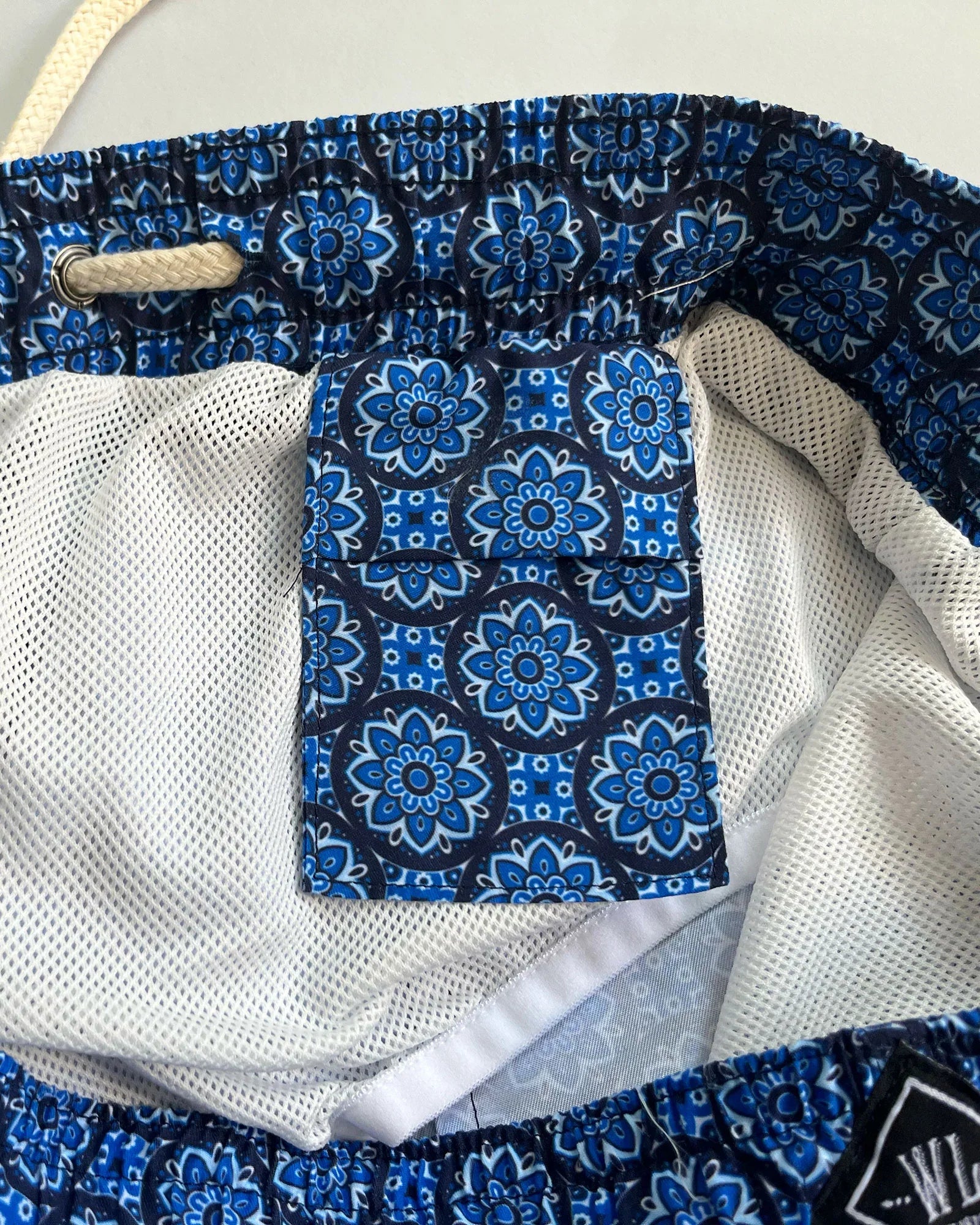 Dive into summer in style with these Mens Swim Shorts, made from recycled polyester for a sustainable choice. Featuring a stylish indigo floral design, you'll be sure to make a statement.