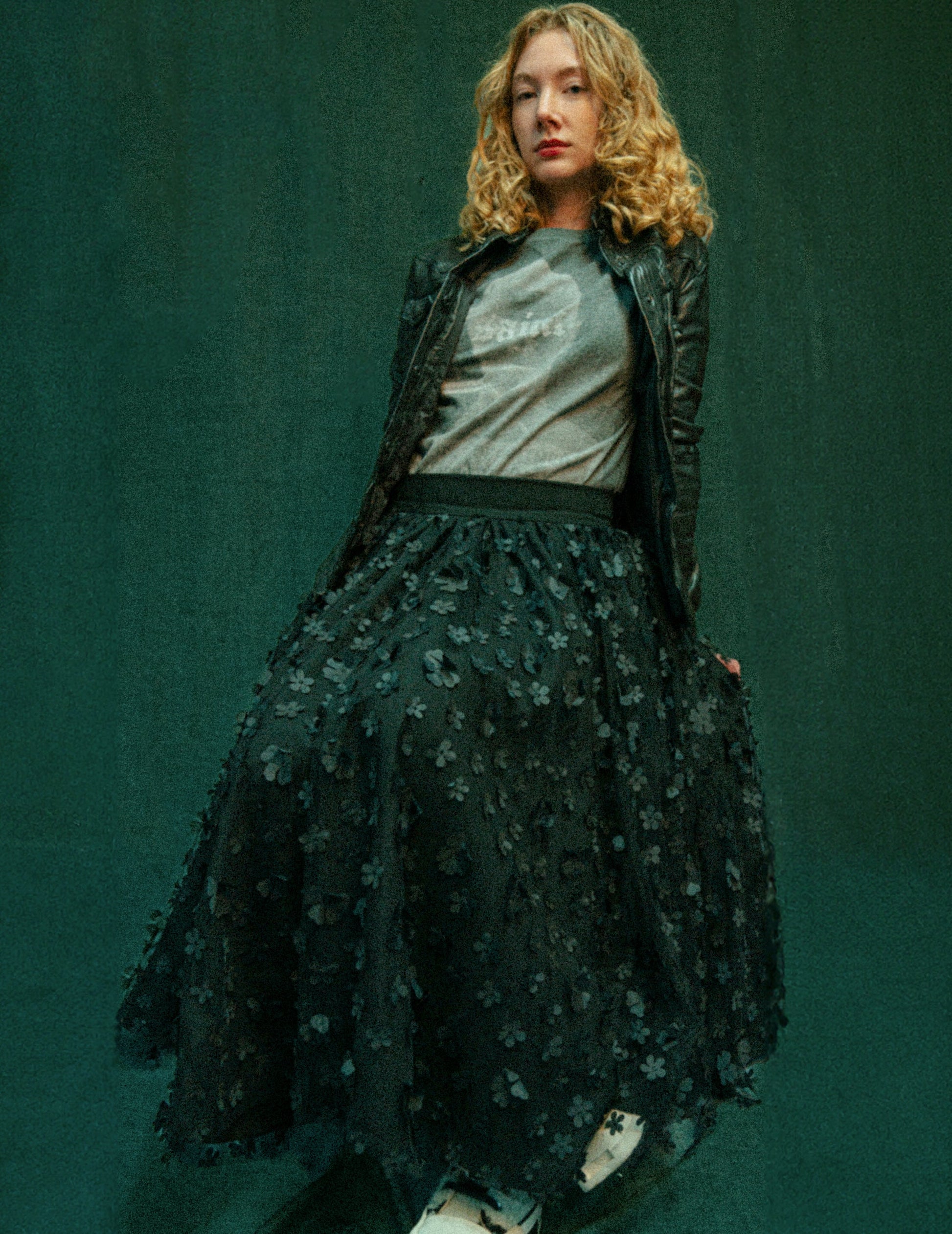 Beautiful Black on Black flowery appliqué, ankle-length mesh maxi skirt with a black flower pattern. The sheer mesh overlay adds a light, airy feel, perfect for layering. This skirt pairs beautifully with both casual and dressy pieces, giving any look a chic, vintage-inspired twist.