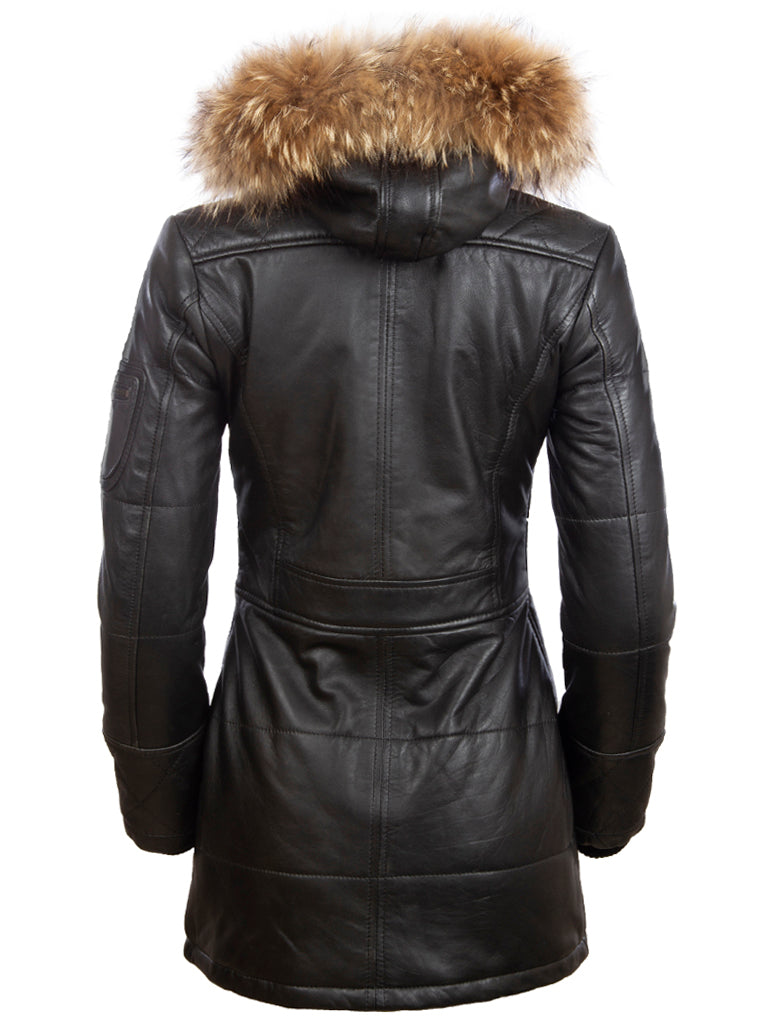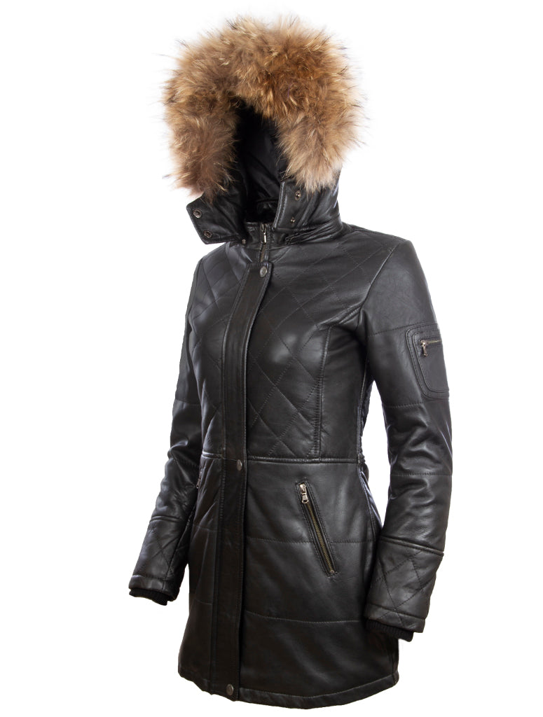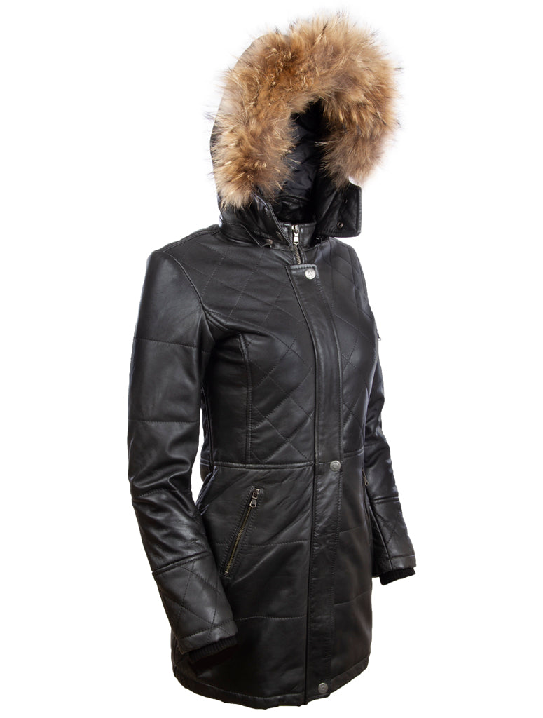 - Women's 3/4 Trench Fur Hood Coat