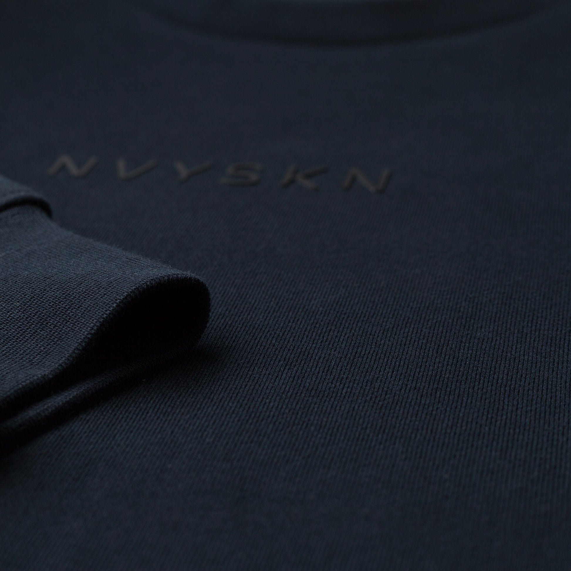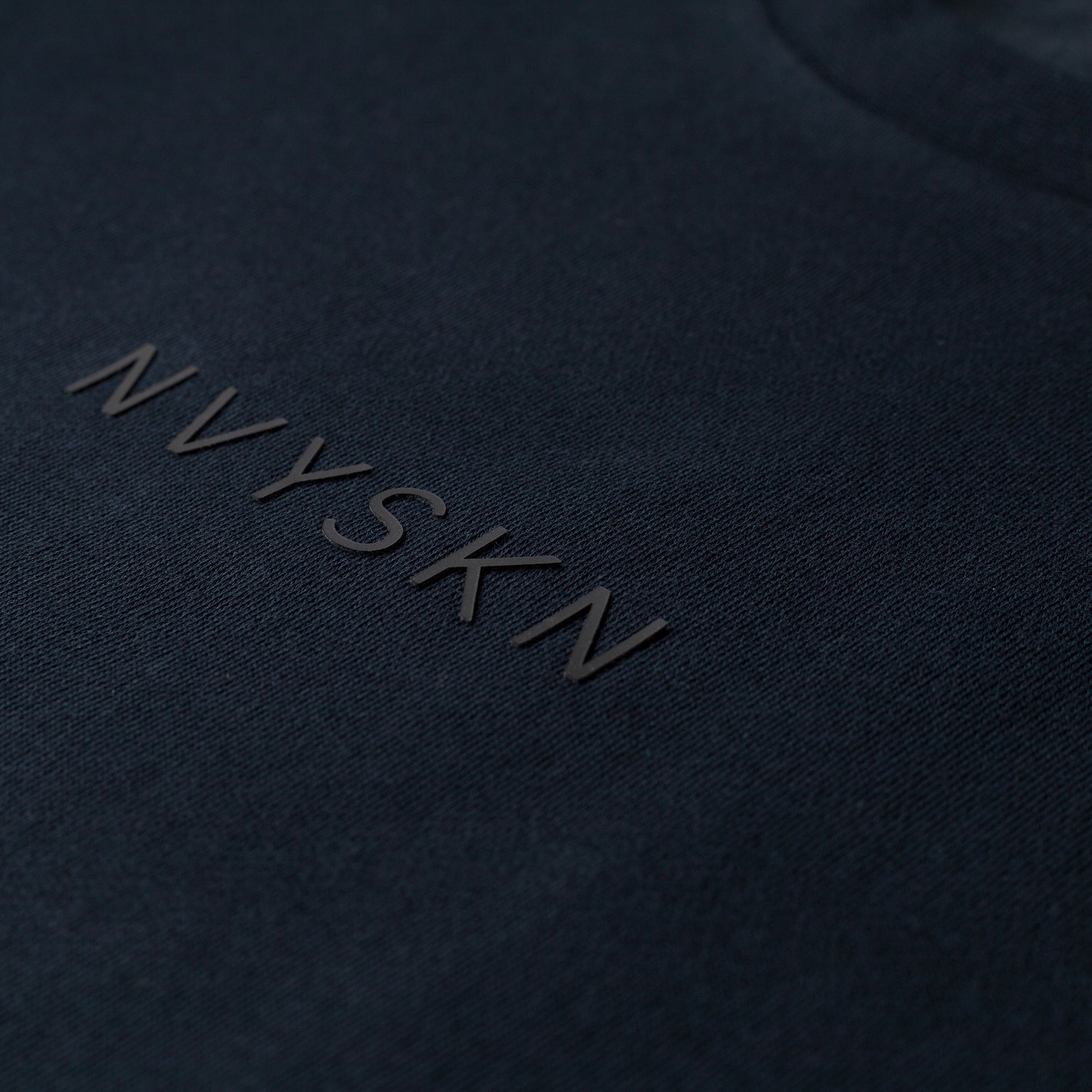 Raised embossed NVYSKN chest logo — minimalist and bold