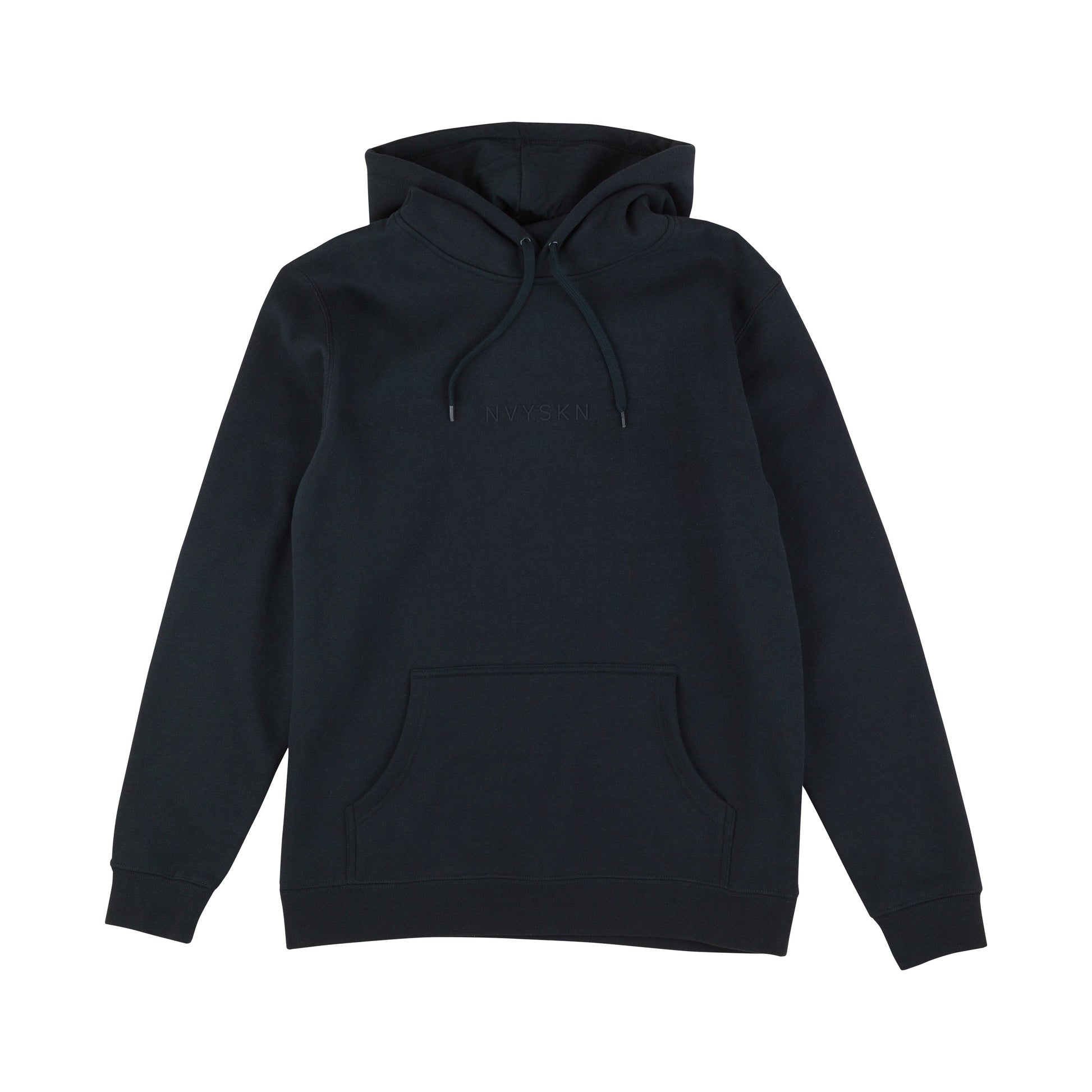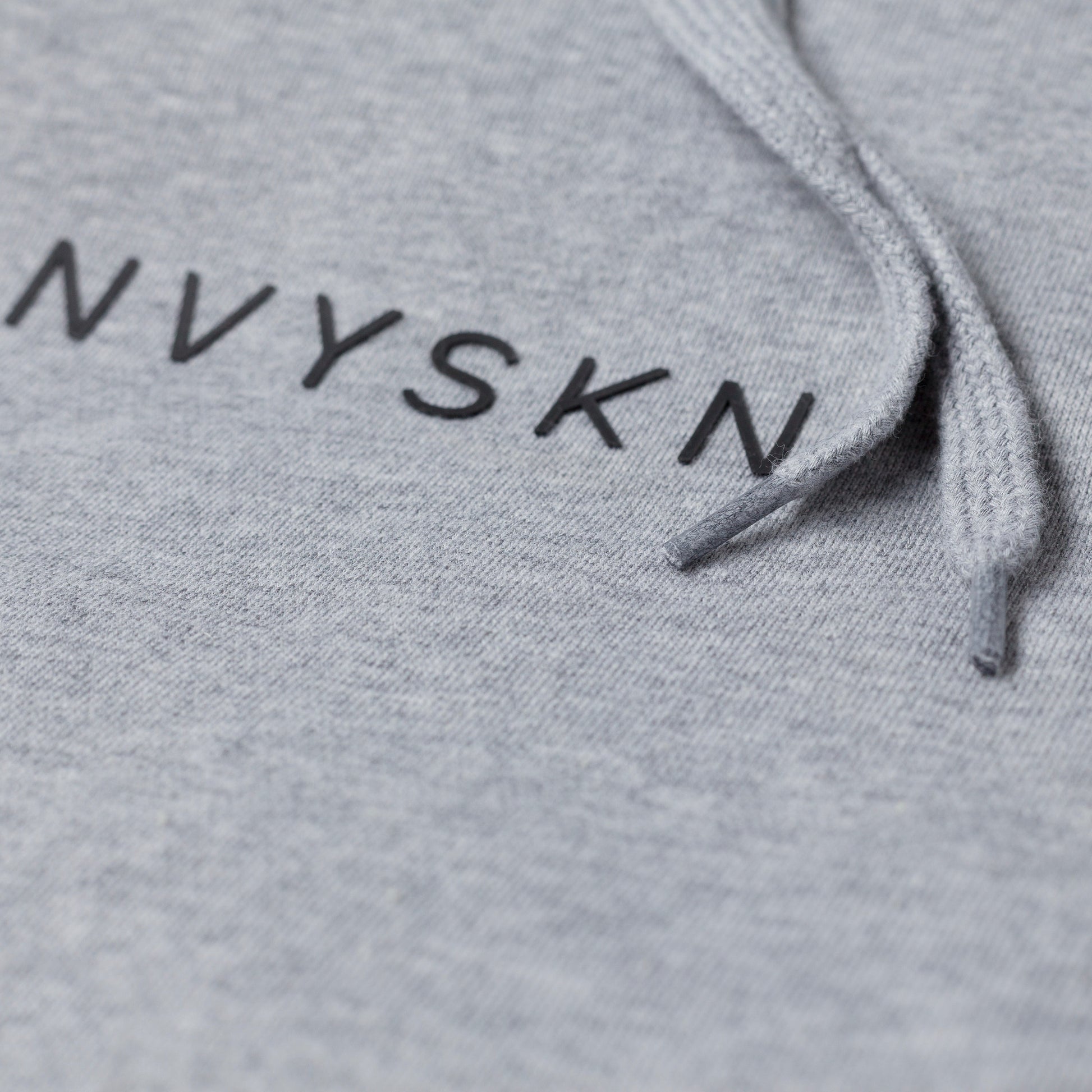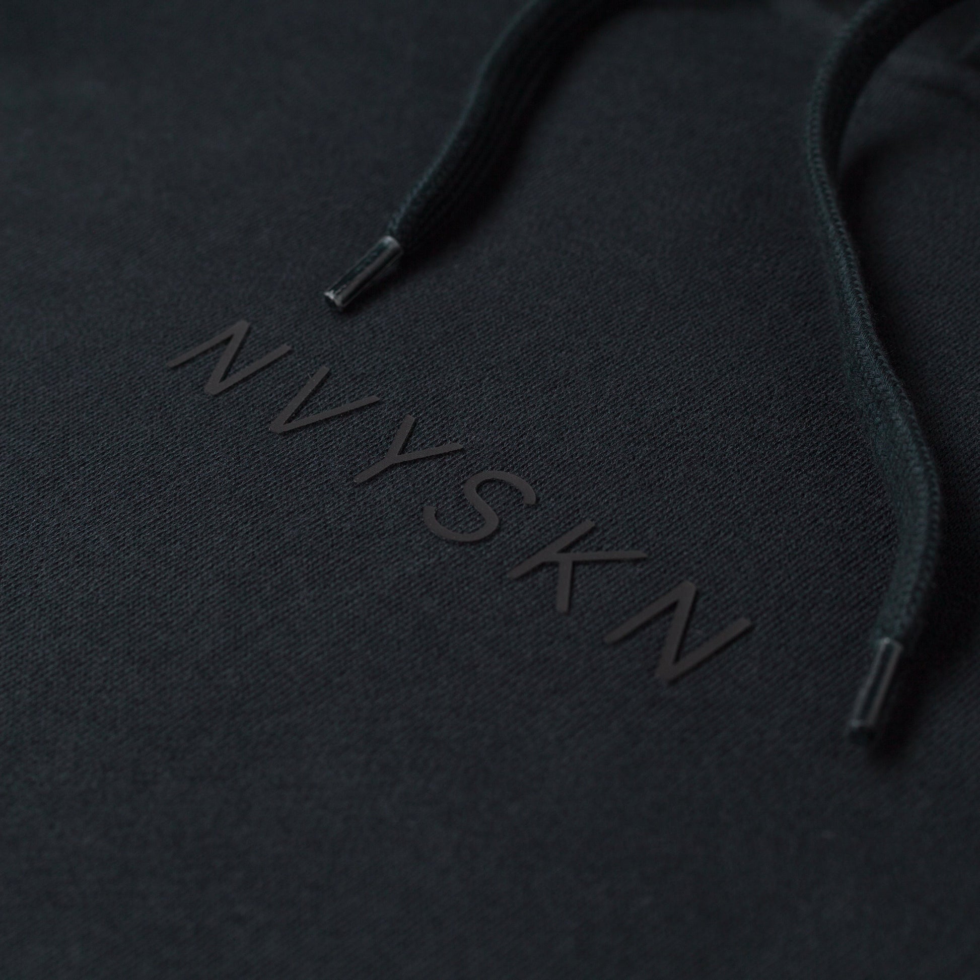 Subtle embossed NVYSKN branding keeps the look minimal and sharp, while the lined hood, ribbed cuffs, and reinforced kangaroo pocket round out its utility-focused build.