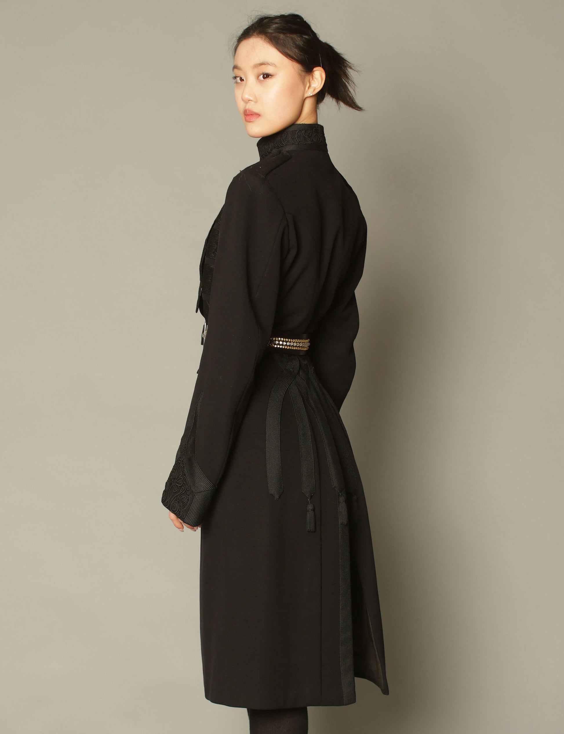 The Frock Coat may have been worn by officers of Lieutenant-General rank and above on formal occasions, when not on parade in command of troops. Dating from the 1830s or earlier, this item of uniform is a knee-length, dark blue, double-breasted coat with velvet collar and cuffs. Its heavy duty wool construction lends it to be versatile for Spring or Winter.