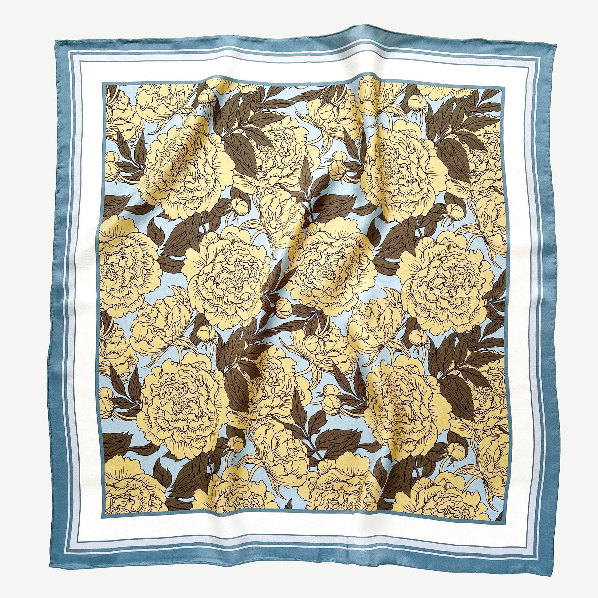 Peony Bloom Silk Scarf – 65cm Hand-Rolled Bandana Scarf