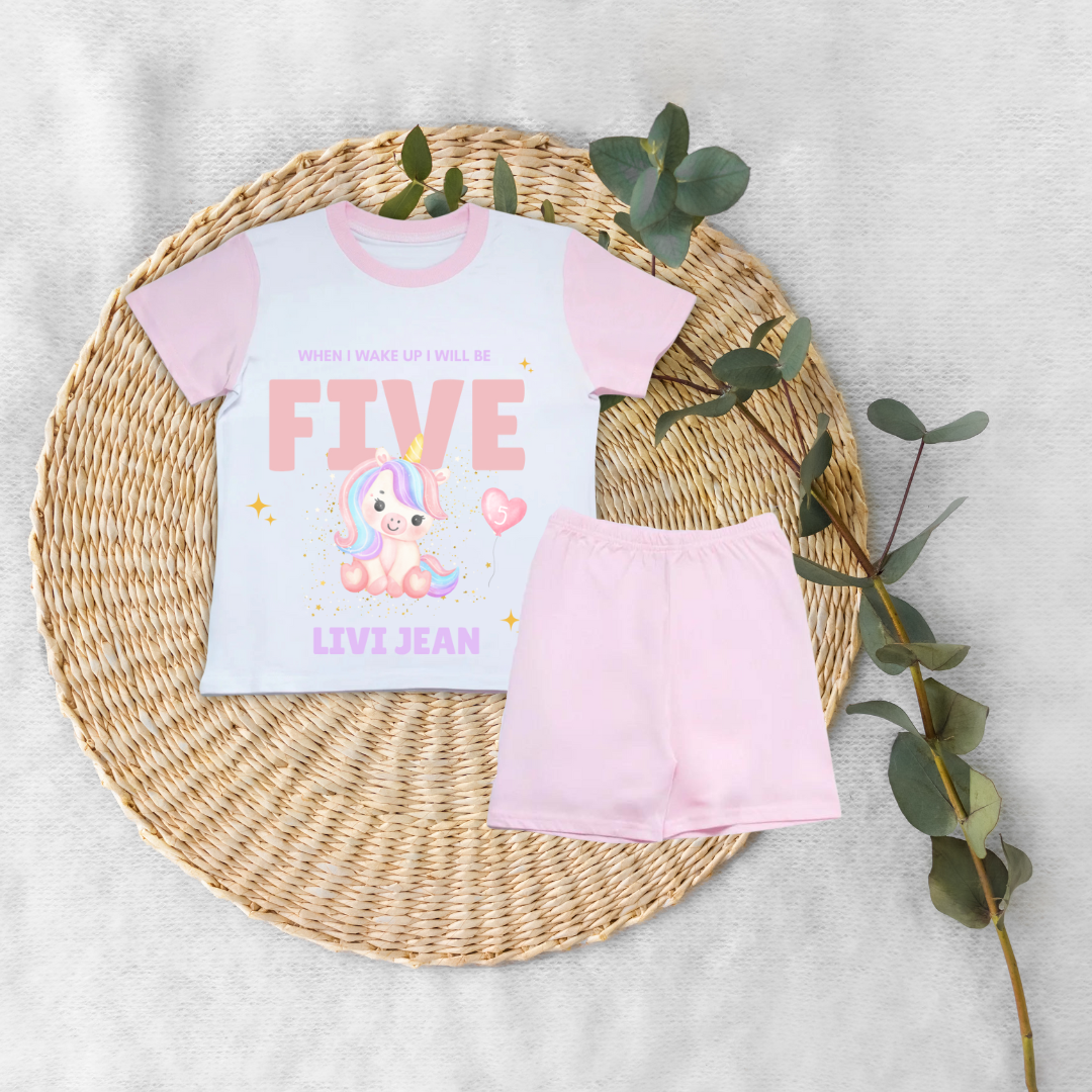 Personalised When I Wake Up Birthday Kids Pink Short / Long Sleeved Pyjamas