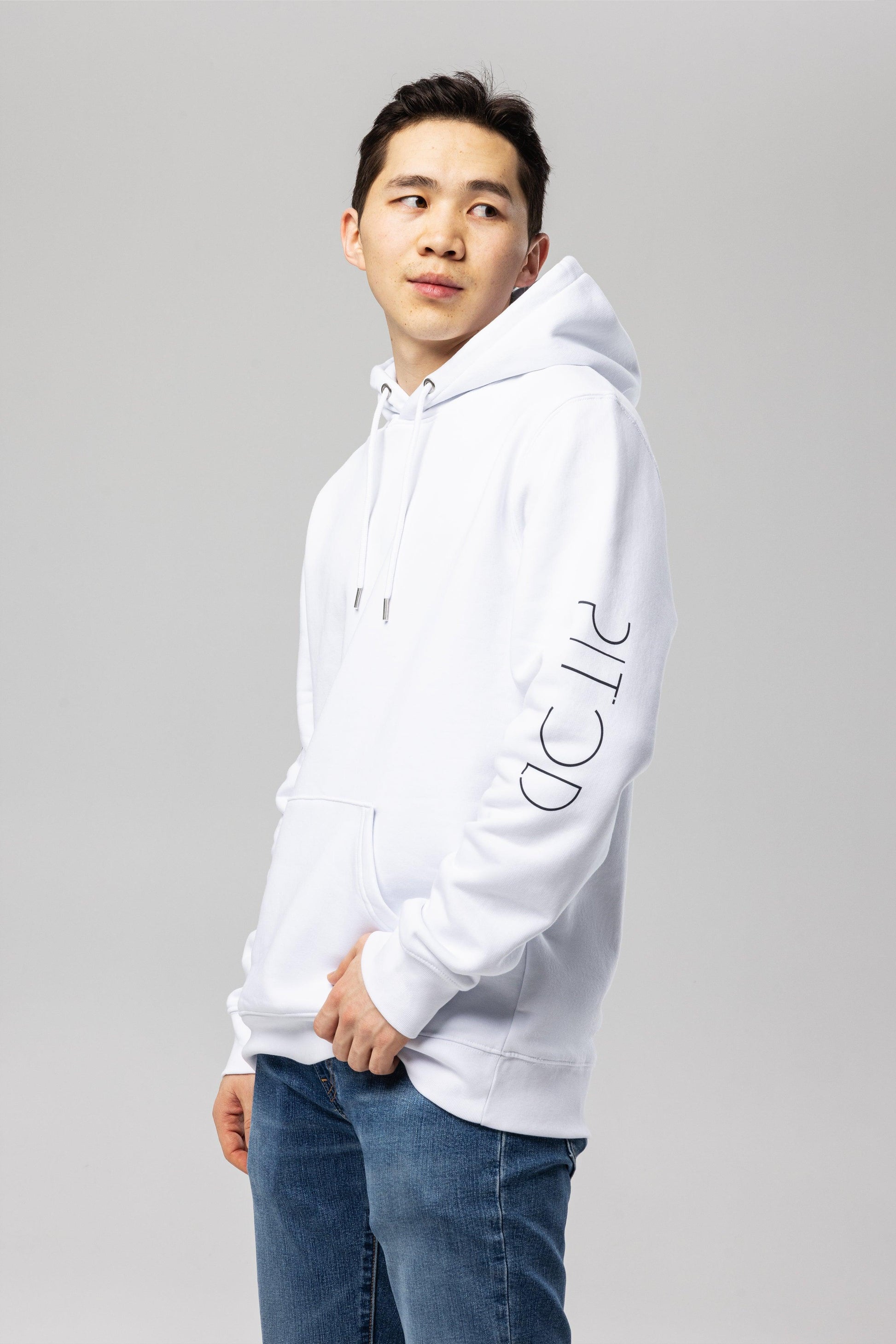 Elevate your streetwear game with the Pitod Sleeve Hoodie, an eco-friendly white hoodie made from 100% Organic Cotton. The double-layered hood, set-in sleeves, and front pouch pocket make it the perfect choice for those chilly mornings or late-night hangouts. The blend of organic cotton and recycled polyester makes it soft and comfortable to wear, while the metal eyelets and half-moon at the back of the neck give it a fashionable touch. The Pitod logo on both sleeves adds a unique branding touch to this versatile hoodie. Stay warm, comfortable, and stylish while making a positive impact on the environment with the Pitod Sleeve Hoodie.