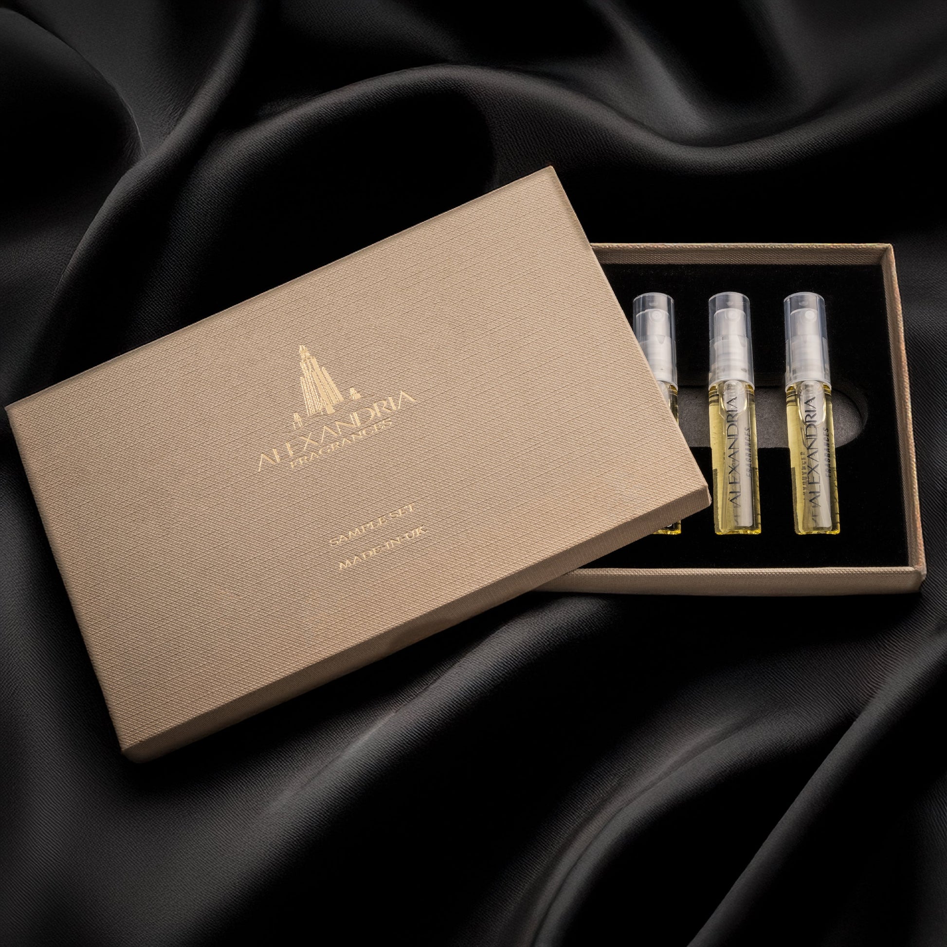 Six (6) × 5 ml atomisers—pre-filled with your choice of Alexandria scents or curated best-sellers. Each spray delivers the same extrait-strength formula as our full-size bottles.