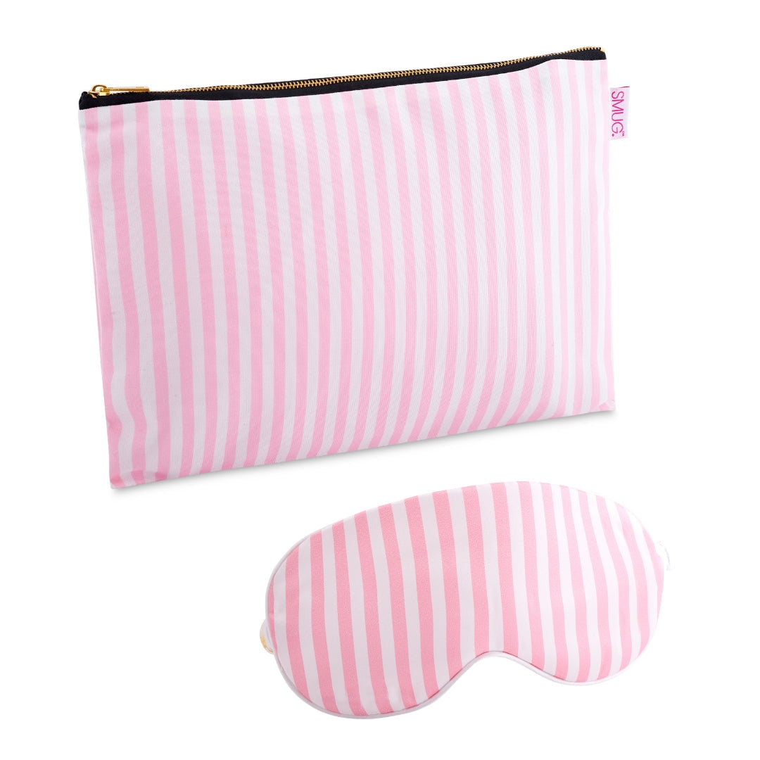 Add a sugary touch to your sleep and storage routine with this irresistibly cute Candy Shop set from SMUG. Featuring our silky-soft Satin Sleep Mask in pink and white stripes with a matching cotton accessories bag, this dreamy duo is as practical as it is pretty – and you’ll save £7 when you buy the set together.