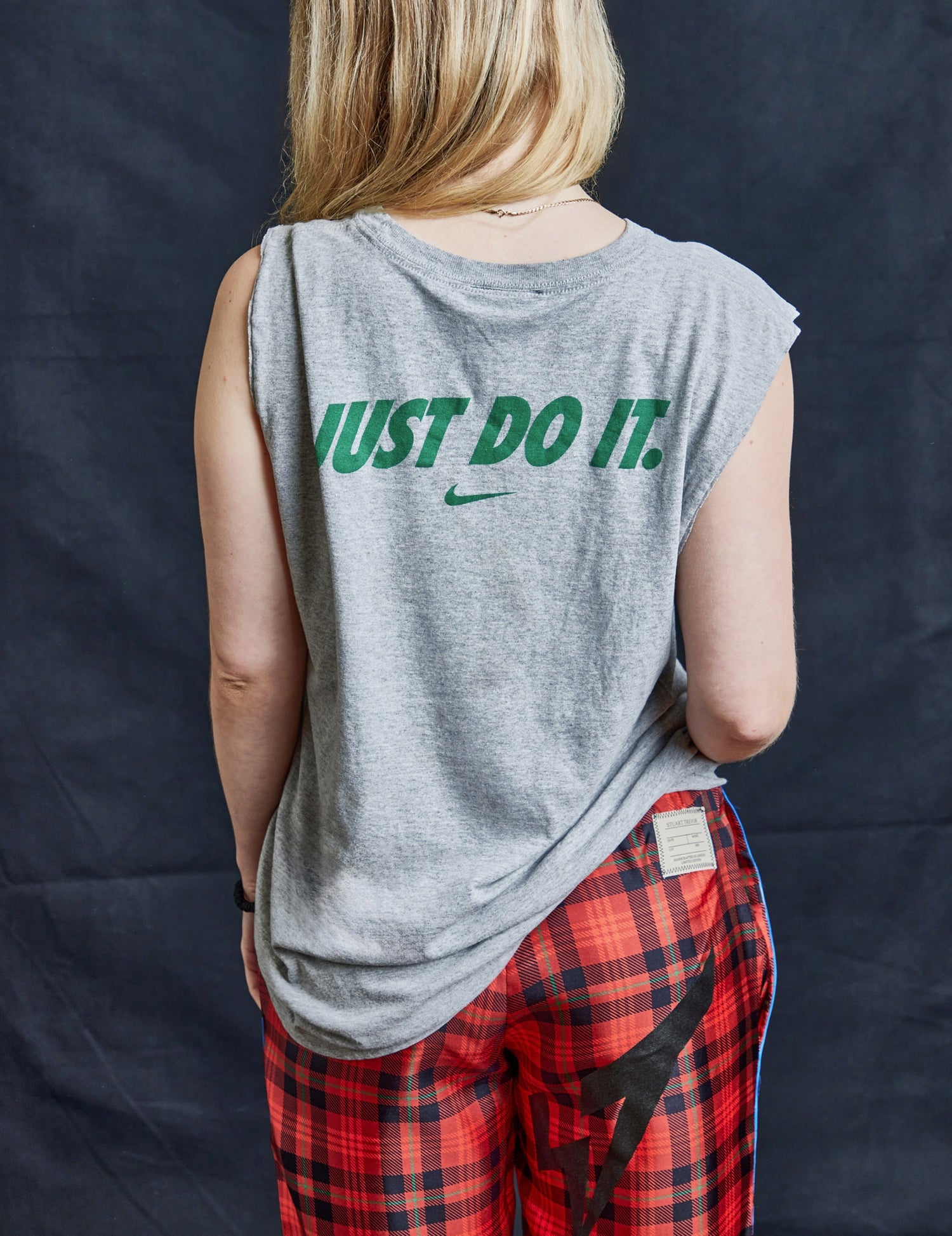 Repurposed Nigel Curtiss 100% Silk Pyjama trousers, neon leg stripe along with waist slit pockets. With ST logo printed on back right thigh, and hand-stitched ST branded patch. Nigel Curtiss was creative director at Yves Sant Laurent, Comme des Garcons and Kenzo.