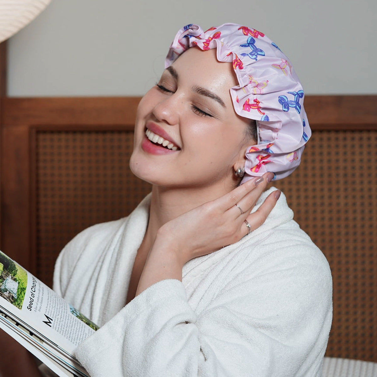 Playful & Practical – The Bubble Pup Print Shower Cap