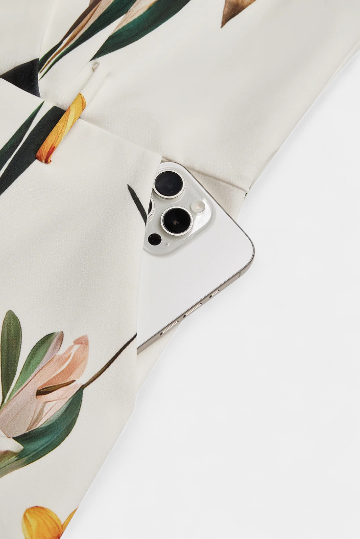 Summer lightness with a silhouette that blends freshness and elegance. The Slara jumpsuit stands out with its deep V-neckline and crisp white print, perfect for sunny days with a relaxed style. Its loose cut and flowing fabric allow freedom of movement, while the belt subtly defines the figure with understated sophistication.