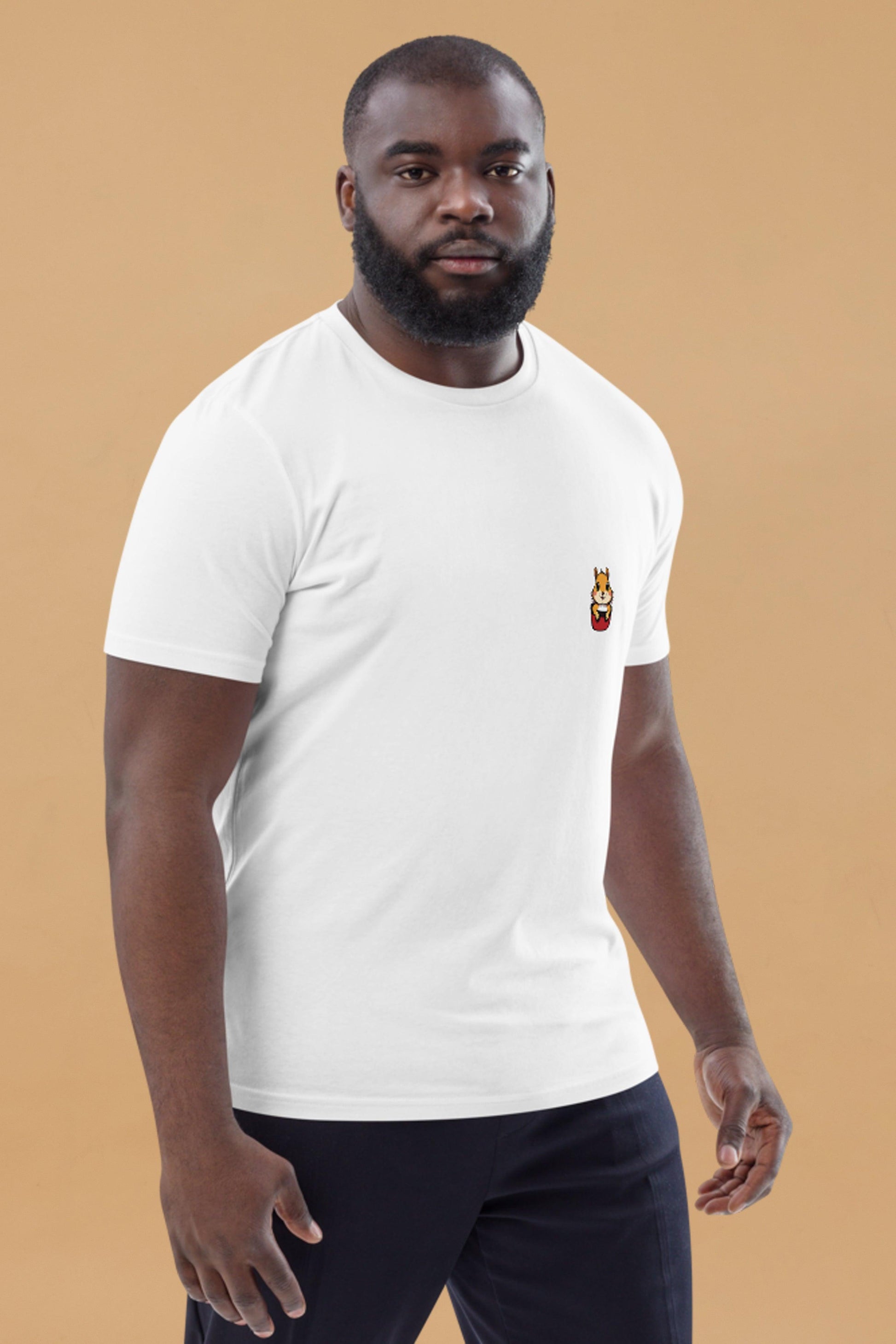 Channel playful vibes with the Squirrel T-Shirt, featuring a delightful drawing of a squirrel peeking out from a pocket on the left chest. Whether you're an animal lover or just appreciate a touch of whimsy, this unisex t-shirt brings fun and comfort to your wardrobe, while being environmentally responsible. Crafted from 100% organic ring-spun cotton, this white t-shirt offers a soft, medium fit that's perfect for everyday wear. With a durable build and eco-friendly materials, it's a stylish and sustainable must-have. Get your hands on the Squirrel T-Shirt and enjoy a blend of quirky style, comfort, and sustainability every day!