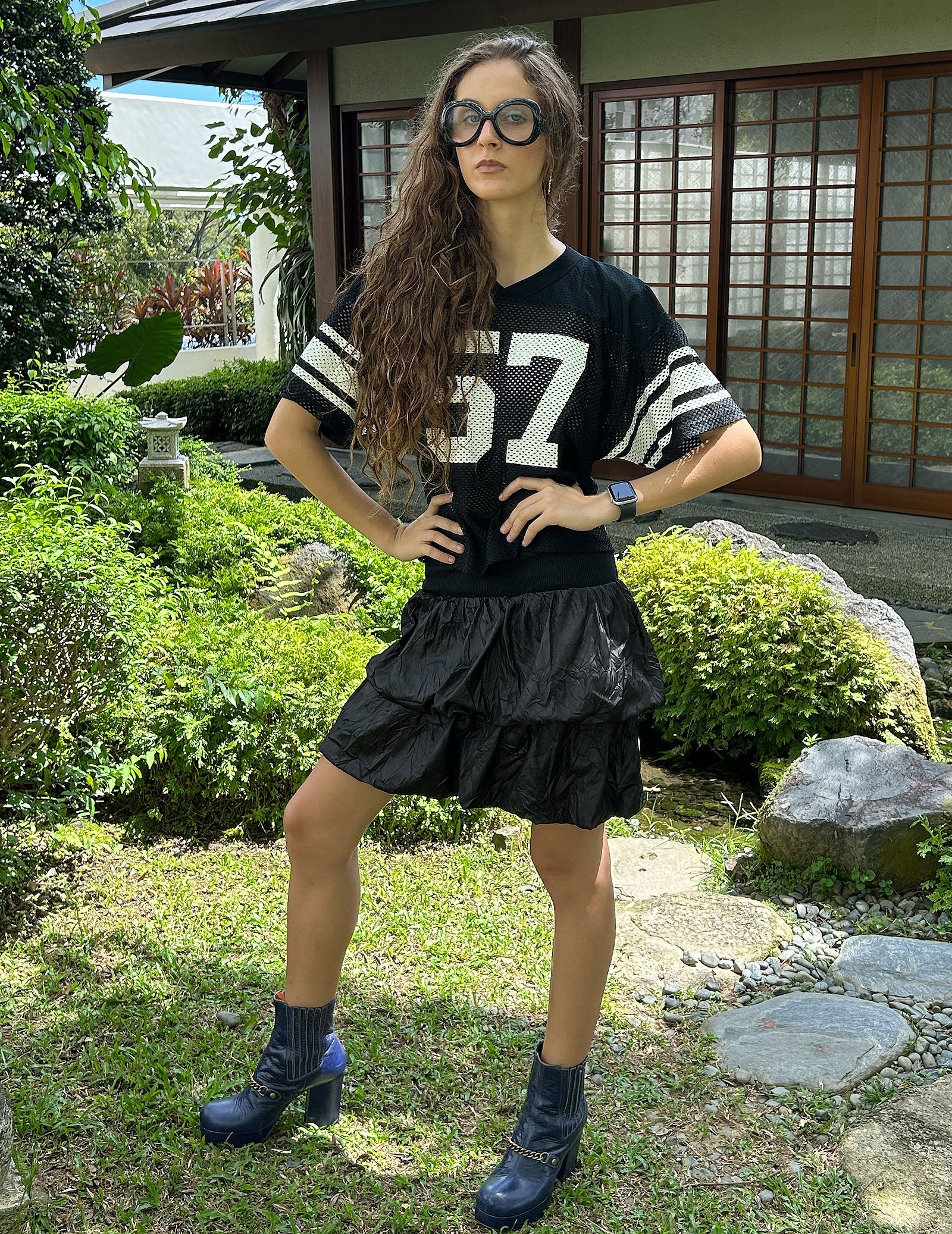 This Japanese designed Vintage black bubble skirt features a dual layer as well as a sleek high waist with elasticated material. Similar to Junya Watanabe.