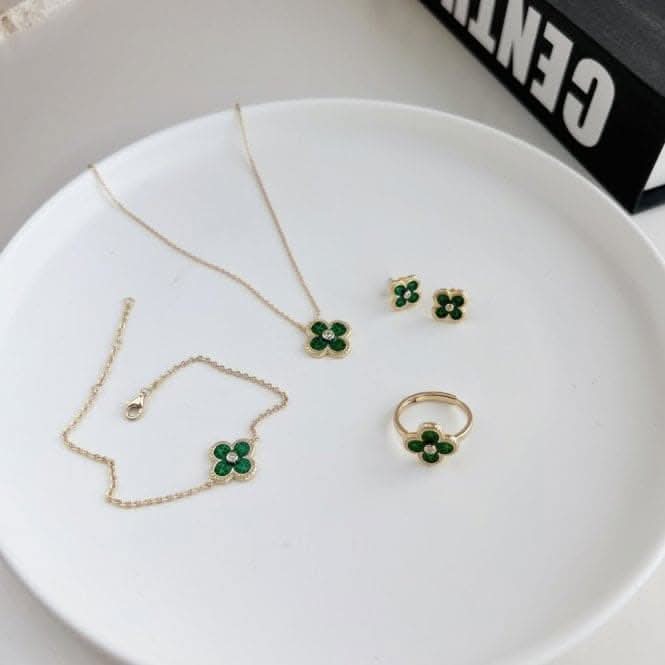 Discover our Sterling Silver Gold Plated Adjustable Green Clover Ring—a symbol of luck and timeless elegance. This meticulously crafted ring features a radiant gold-plated clover motif adorned with captivating green accents, symbolizing good fortune and sophistication. Its adjustable design ensures a perfect fit for every finger, making it a versatile accessory for any occasion. Elevate your look with the allure of luck and style, beautifully combined in this Sterling Silver masterpiece, where symbolism and fashion seamlessly coalesce