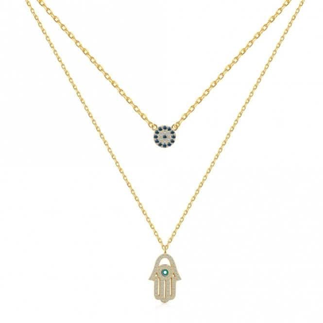 Ellie Rose London Sterling Silver Gold Plated Double Chain Evil Eye Necklace ERLN037