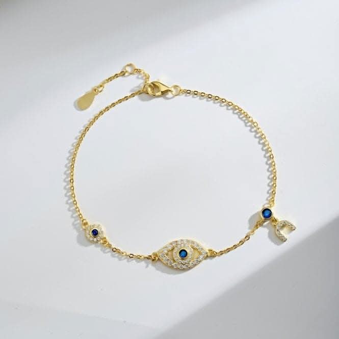 Sterling Silver Gold Plated Evil Eye Lucky Horseshoe Bracelet ERLB046