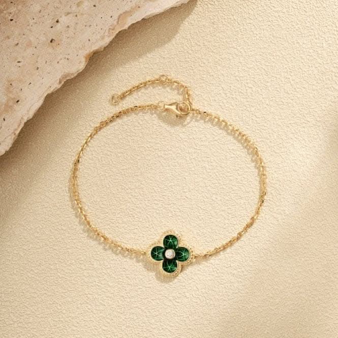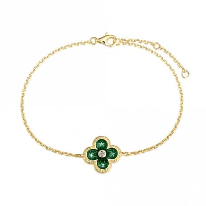 Ellie Rose London Sterling Silver Gold Plated Green Clover Bracelet ERLB040