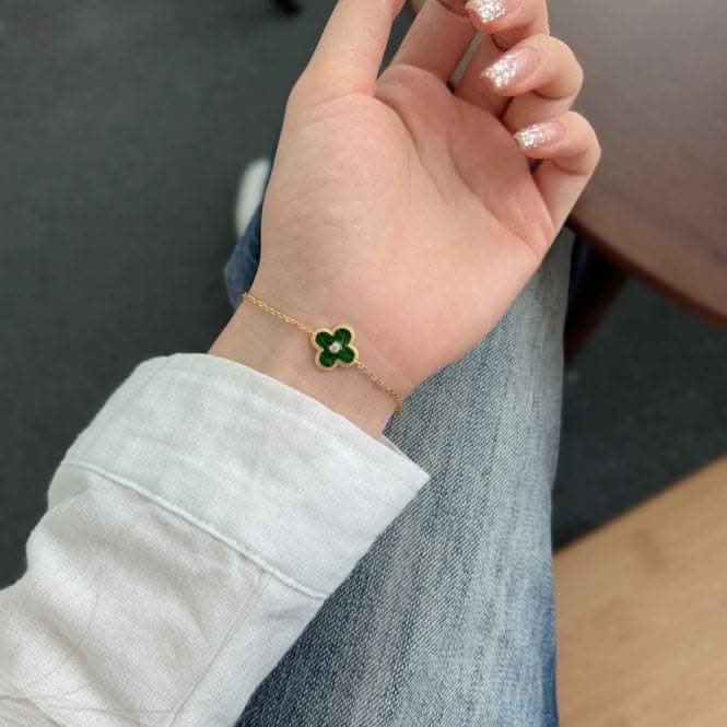 Introducing our Sterling Silver Gold Plated Green Clover Bracelet—a symbol of luck and timeless elegance. This meticulously crafted bracelet features radiant gold-plated clover motif adorned with captivating green accents, symbolizing good fortune and sophistication. Its adjustable design ensures a perfect fit for every wrist, making it a versatile accessory for any occasion. Elevate your look with the allure of luck and style, beautifully combined in this Sterling Silver masterpiece, where symbolism and fashion harmoniously converge.