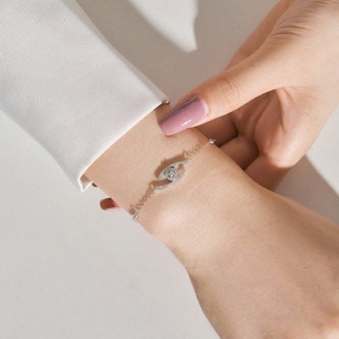 Ellie Rose London Sterling Silver Rhodium Plated Sparkling Zirconia Evil Eye Bracelet ERLB053