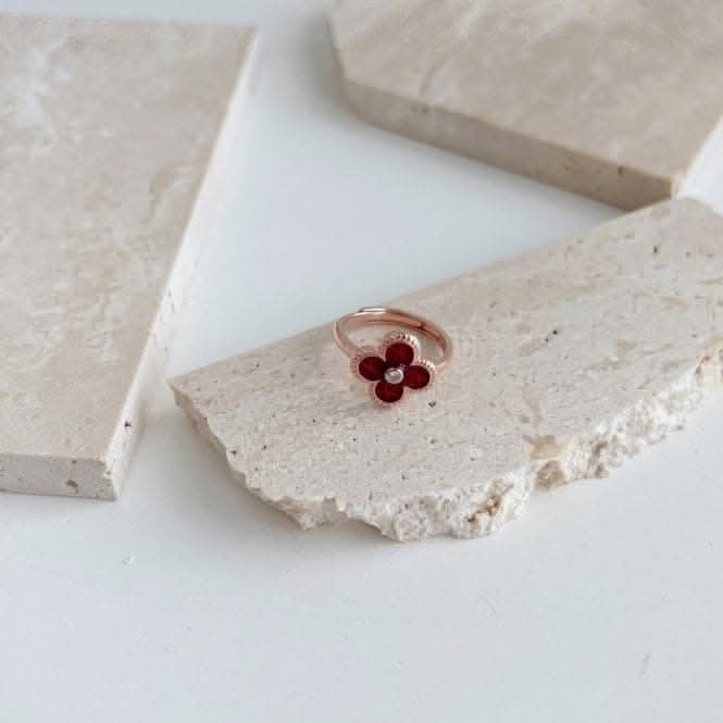 Ellie Rose London Sterling Silver Rose Gold Plated Adjustable Red Clover Ring ERLR006