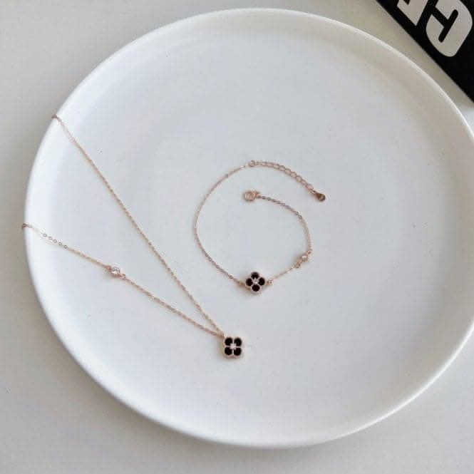 Behold our Sterling Silver Rose Gold Plated Black Clover Bracelet—a symbol of luck and timeless beauty. This meticulously crafted bracelet showcases radiant rose gold-plated clover motif adorned with captivating black accents, symbolizing good fortune and sophistication. Its adjustable design ensures a perfect fit for every wrist, making it a versatile accessory for any occasion. Elevate your look with the allure of luck and style, beautifully combined in this Sterling Silver masterpiece, where symbolism and fashion harmoniously converge.