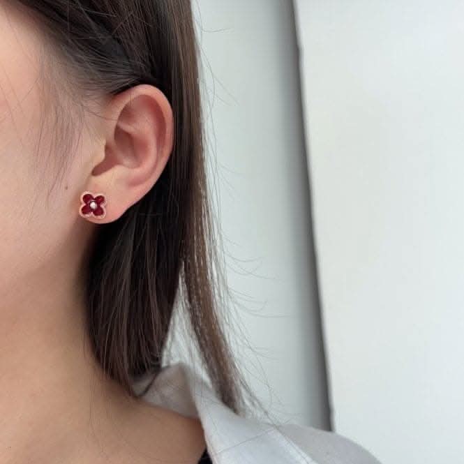 Sterling Silver Rose Gold Plated Red Lucky 4 Leaf Earrings ERLE077