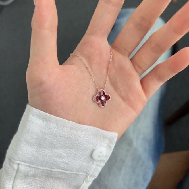 Ellie Rose London Sterling Silver Rose Gold Plated Red Clover Necklace ERLN030