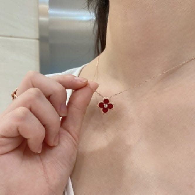 Sterling Silver Rose Gold Plated Red Lucky 4 Leaf Necklace ERLN030