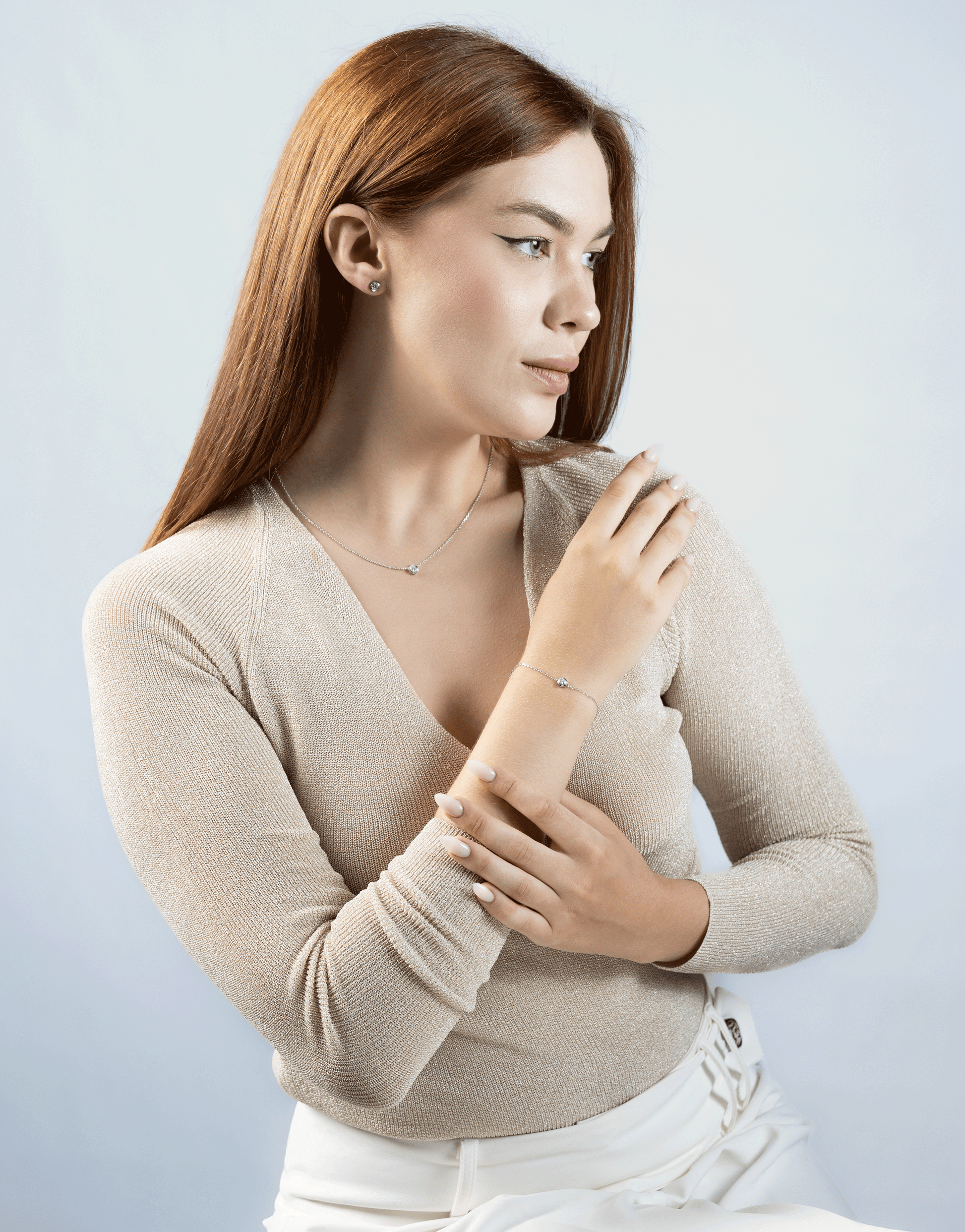 This necklace features a 0.20-carat moissanite, renowned for its durability, superior brilliance and fire, even surpassing that of diamonds.